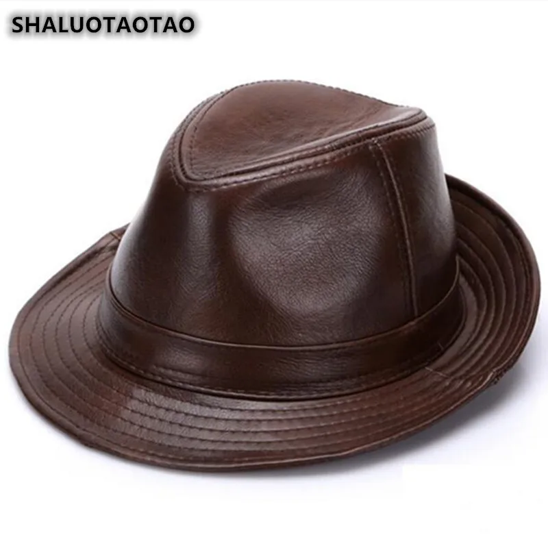 Шапка SHALUOTAOTAO мужская из натуральной кожи, Модная элегантная шляпа из воловьей кожи, фетровая шляпа для джентльмена, для вечевечерние, джаза, Осень-зима