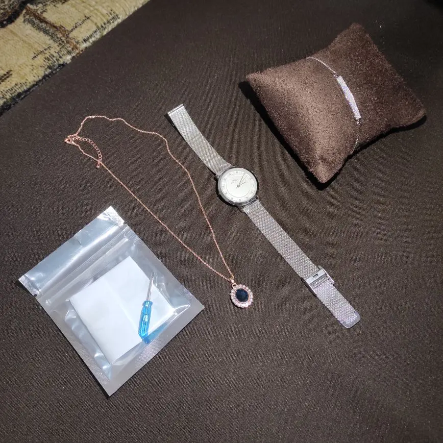 Это уже вторые часы , которые заказываю от этого производителя. Прошлая модель была под золото с кожаным ремешком - работают. Очень довольна часами - на руке смотрятся стильно. От продавца приятный бонус в виде кулона. P.S. В комплекте пришла маленькая отвёртка. РЕКОМЕНДУЮ!!!!!