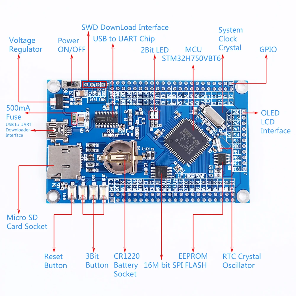 STM32H750VBT6 плата для разработки ARM STM32H7 программируемый MCU контроллер STM32 Cortex-M7 системная плата