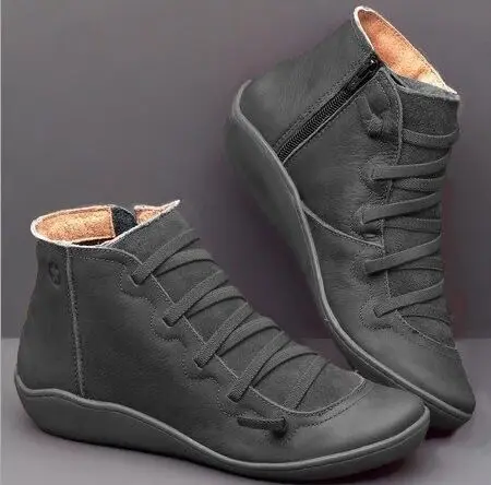 Ботильоны женские из искусственной кожи, Винтажные ботинки в стиле панк, на плоской подошве, с перекрестными ремешками, Осень-зима