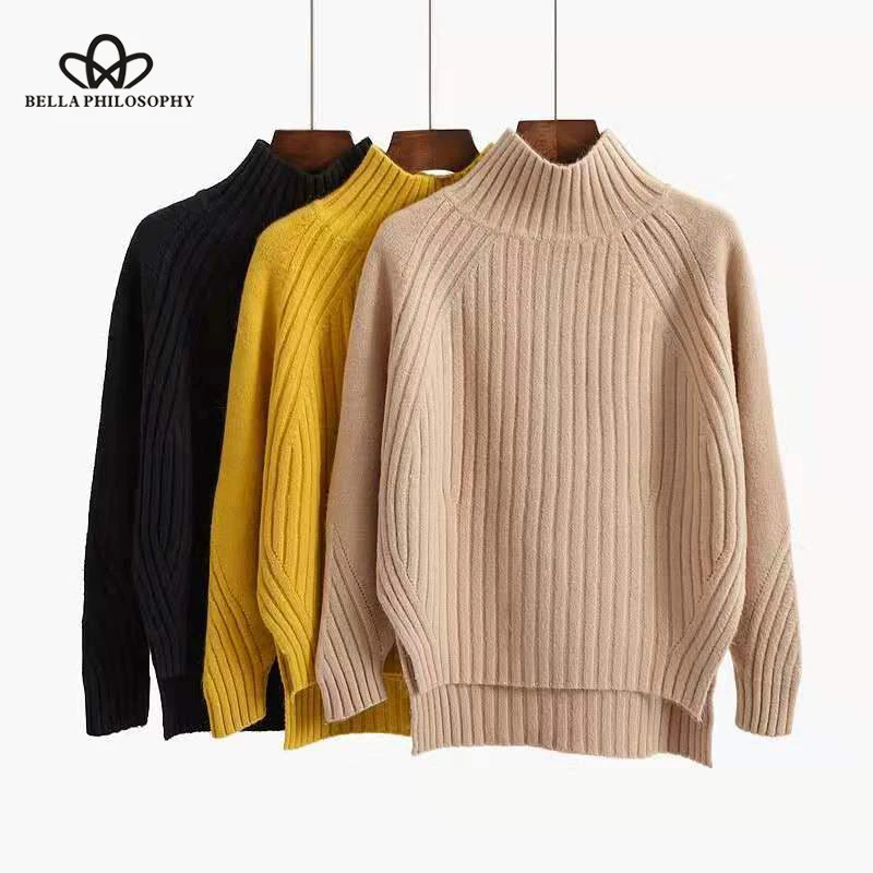 Женская водолазка Bella philosophy, винтажный свободный однотонный пуловер, Повседневная Уличная одежда, Женская трикотажная верхняя одежда на осень