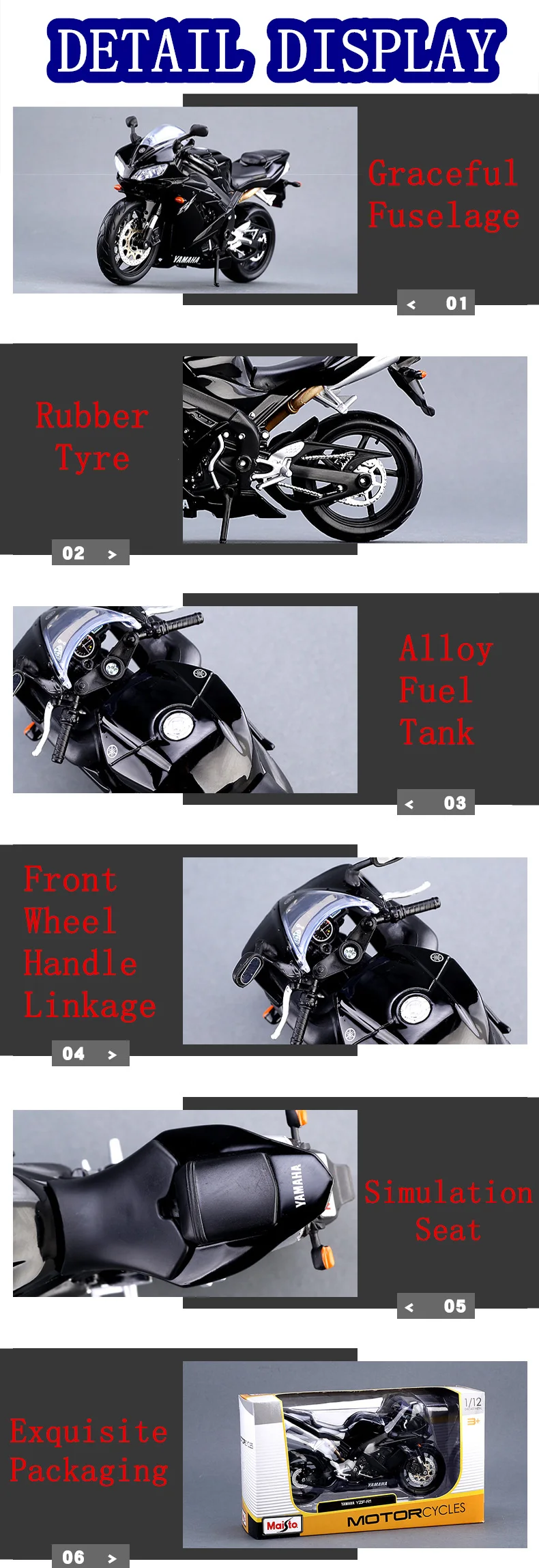 Описание товараMaisto 1:12 Yamaha R1 оригинальная Авторизованная модель мотоцикла из сплава для сбора игрушечных автомобилей