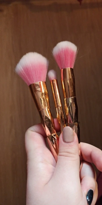Кисточки хорошие, мягкие, но одна была погнута. Брала себе и в подарок, радует что для подарка кисти целы. В какой-то момент по отслеживанию появился статус что доставка отменена, я написала продавцу, он скинул скриншот что у него всё в пути и попросил подождать. Так статус до прибытия и оставался как отмененная доставка, но в итоге всё пришло.