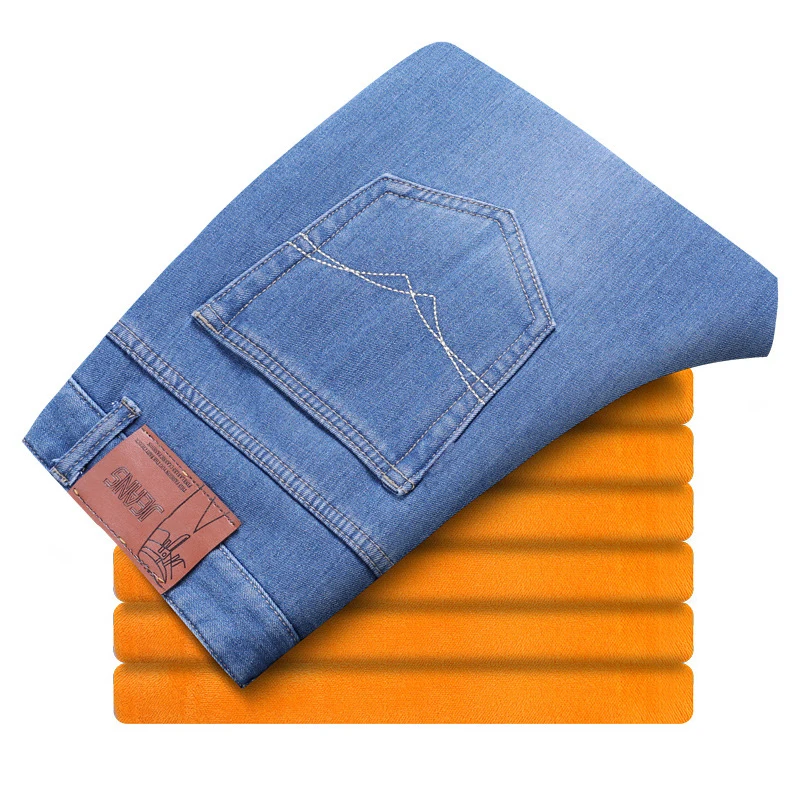 Большого размера плюс мужские теплые джинсы 2019 Новинка зимы модная повседневная обувь высокого качества из флиса эластичные прямые брюки из толстой ткани мужские джинсы бренд