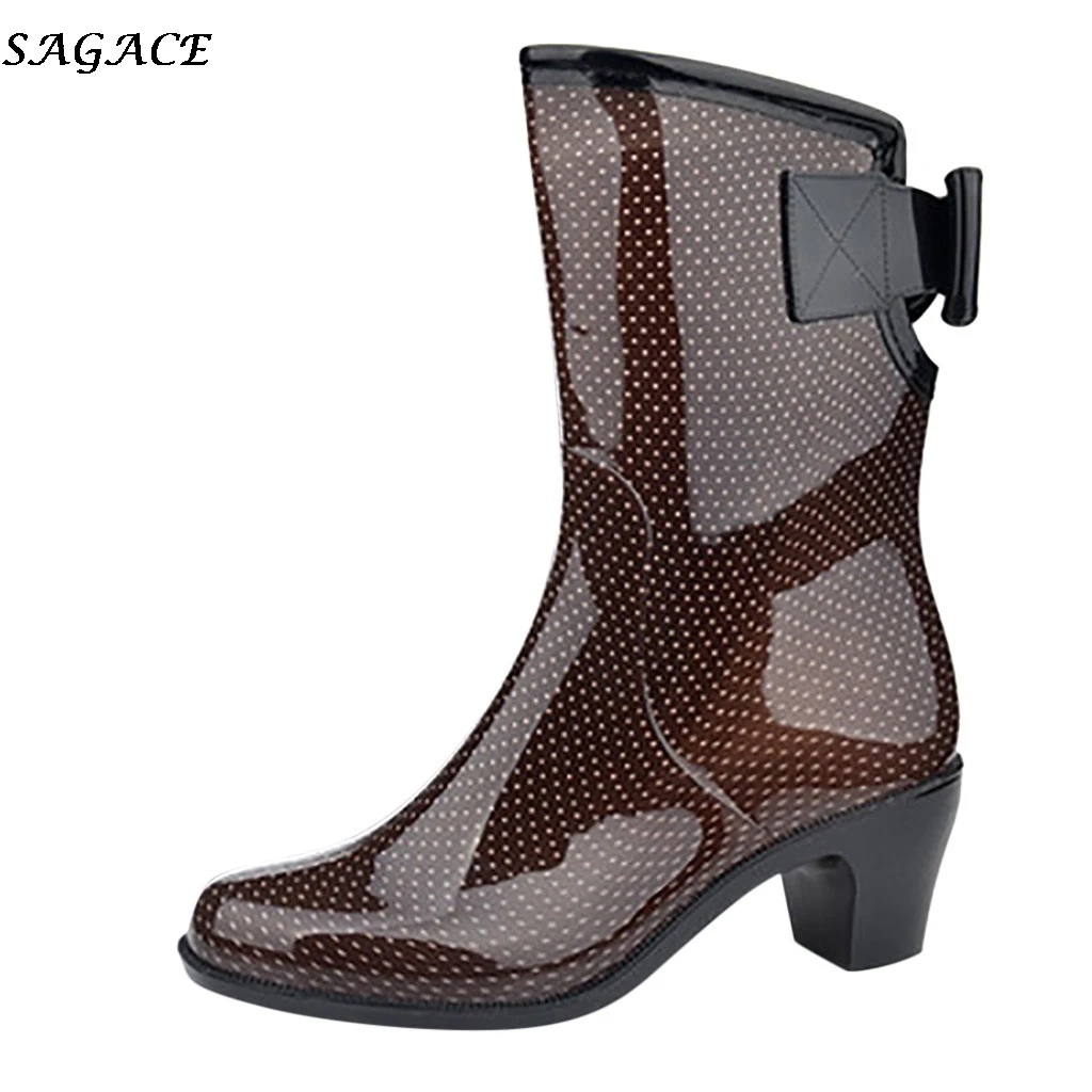 Сапоги для дождливой погоды SAGACE, женские резиновые сапоги с принтом, водонепроницаемые высокие сапоги-трубы с нескользящей износостойкой подошвой, водонепроницаемая обувь, # 4z
