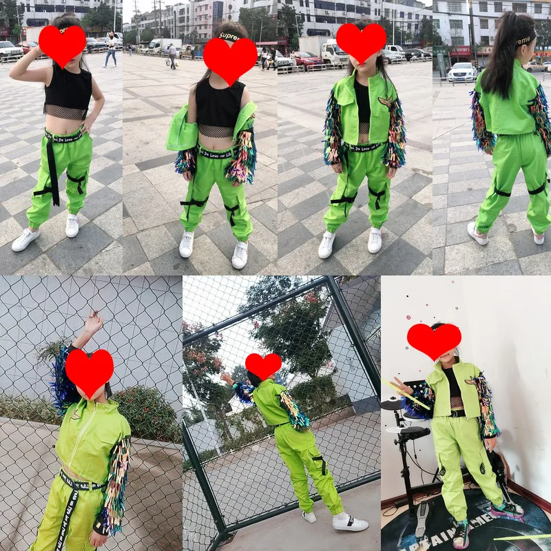 Флуоресцентный зеленый костюм для девочек в стиле хип-хоп, куртка с...