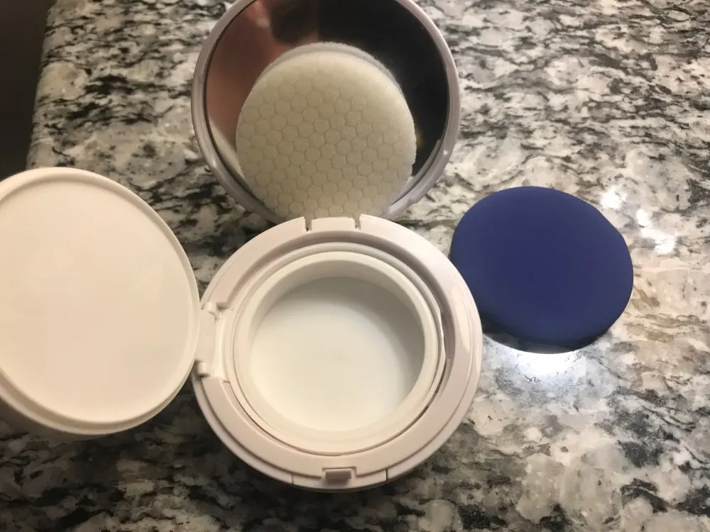 Очень милый и компактный! Я более темный тон кожи, так что мне трудно найти подушки в моем тени, и теперь я могу сделать свой собственный с этим :) губка впитывает много продукта, и подушка обеспечивает отличное покрытие.