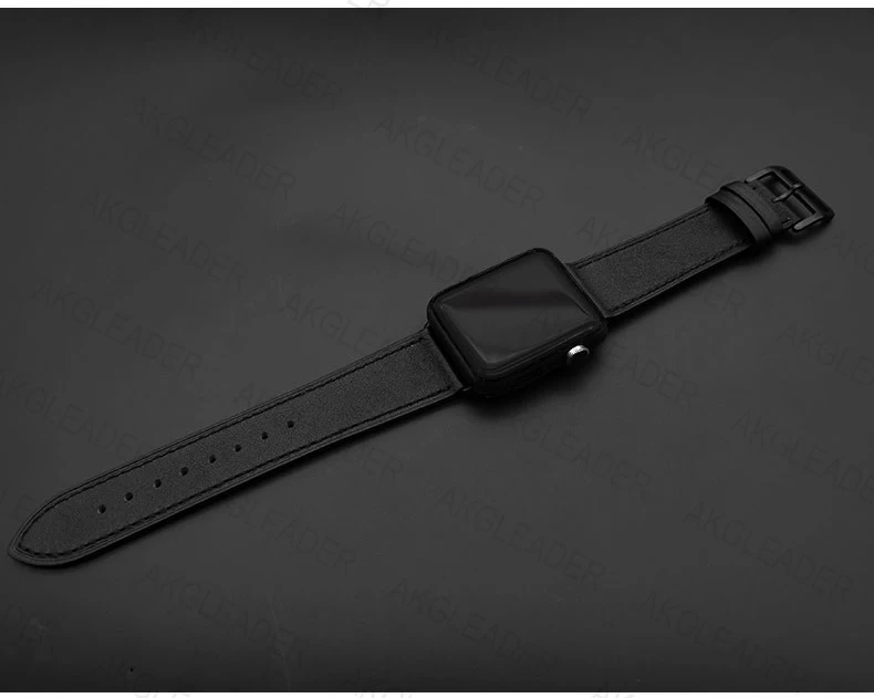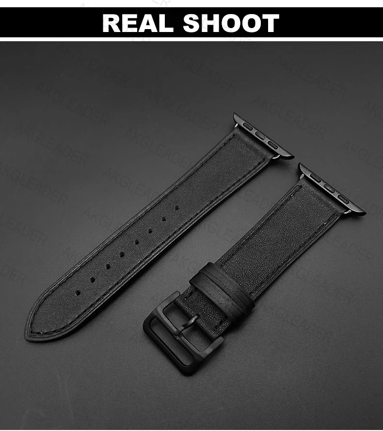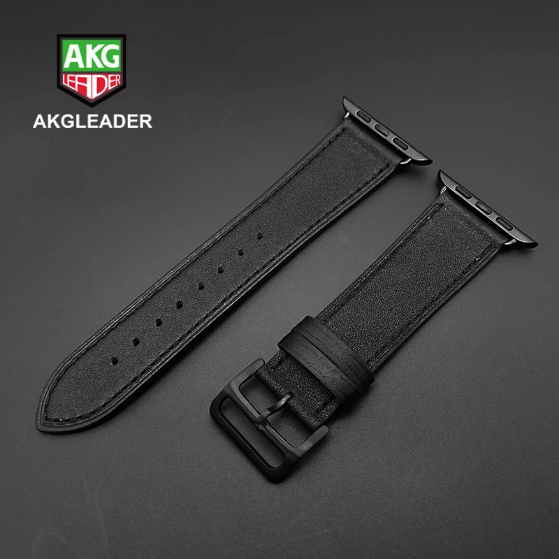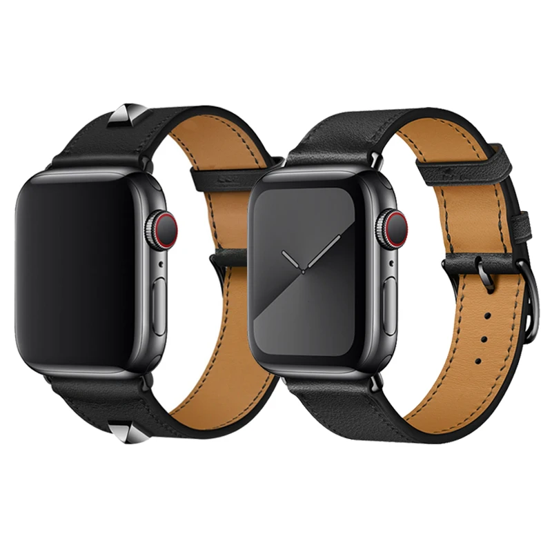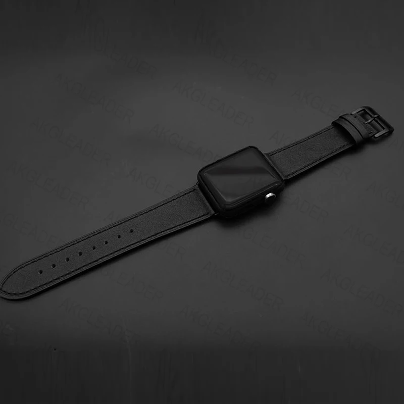 Ремешок из натуральной кожи для Apple Watch Series 5, черный браслет для наручных часов iWatch Series 3 2, 40 мм 44 мм