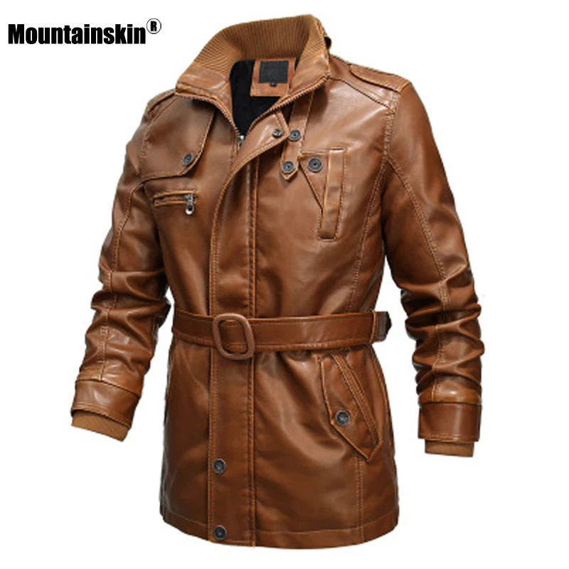 Мужская кожаная куртка Mountainskin, длинная приталенная мотоциклетная ветровка из искусственной кожи, размеры до 6XL, зима 2022