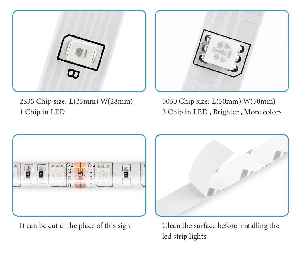 SMD2835 / SMD5050 светодиодный чипЦвет: RGBДлина: 5 м/10 мВодонепроницаемость: IP20 без водонепроницаемости IP65 водонепроницаемыйХарактеристики: беспроводное управление Bluetooth/Управление приложениемУгол луча: 120 градусовТемпература хранения. : -40 ~ 80 градусов ЦельсияРабочая температура. : -25 ~ 60 градусов Цельсия5 м в комплекте:1*5 м Светодиодная лента1 * Контроллер bluetooth + 24-клавишный ИК-пультАдаптер 1*12 В10 м комплект включает:Светодиодная лента 2*5 м1*1-2 разъема1 * Контроллер bluetooth + 24-клавишный ИК-пультАдаптер 1*12 ВПрименение:-Идеально подходит для украшения контуров зданий, ландшафтного освещения, развлекательных тем,-Праздничный светильник, скульптура, декоративная фигура, активные знаки, дисплеи, витрины магазинов-И витрины, бар, ночной клуб, улица, тротуар, палуба, парк, крыльцо, лестница, перила, потолок или подъездная дорога.