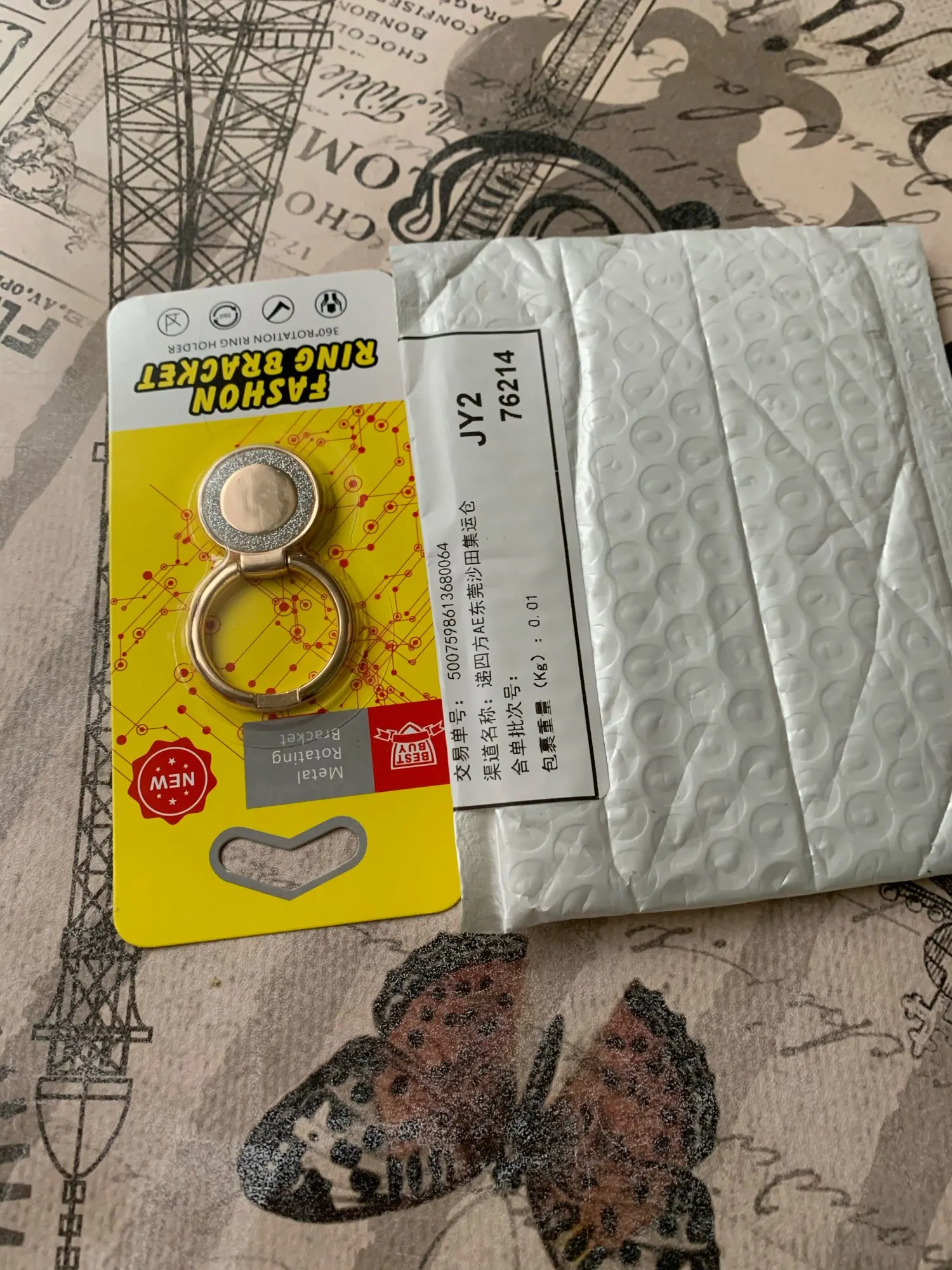 Вот такой красивый держатель в упаковке .Покажу на фото рядом с дочкиным телефоном .