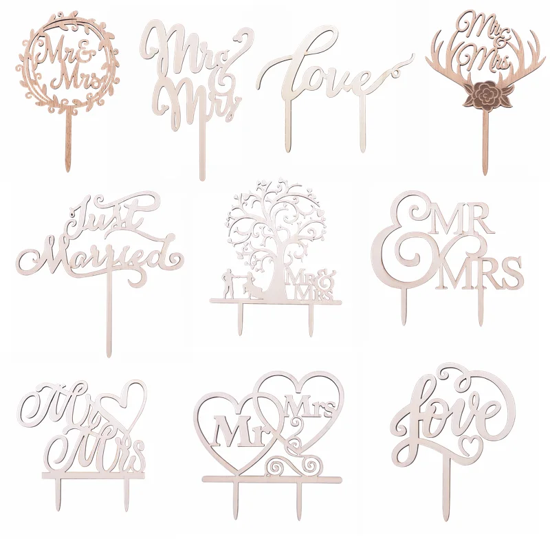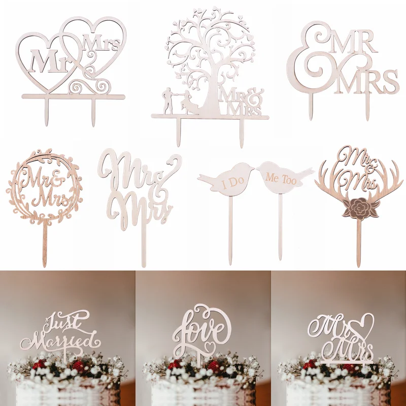 1 шт. Mr Mrs Деревянный Торт топпера, полые буквы Топ торты украшен...