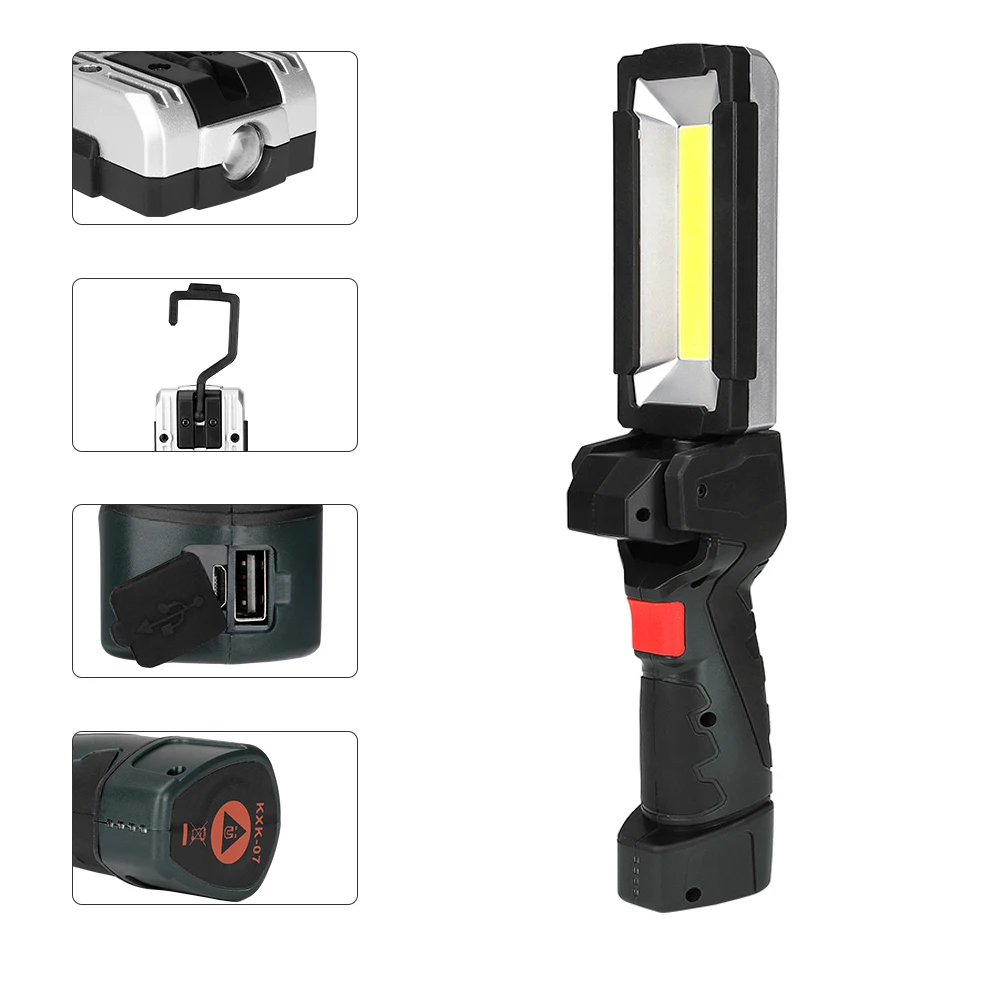 Светодиодный Многофункциональный портативный фонафонарь COB со встроенным аккумулятором и магнитным крючком