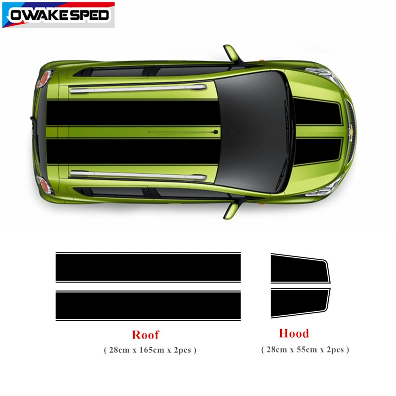 Автомобильная наклейка на крышу капота, спортивные полосы, Автомобильная крышка двигателя, виниловая наклейка, гоночный стиль для Chevrolet Spark 2011-18