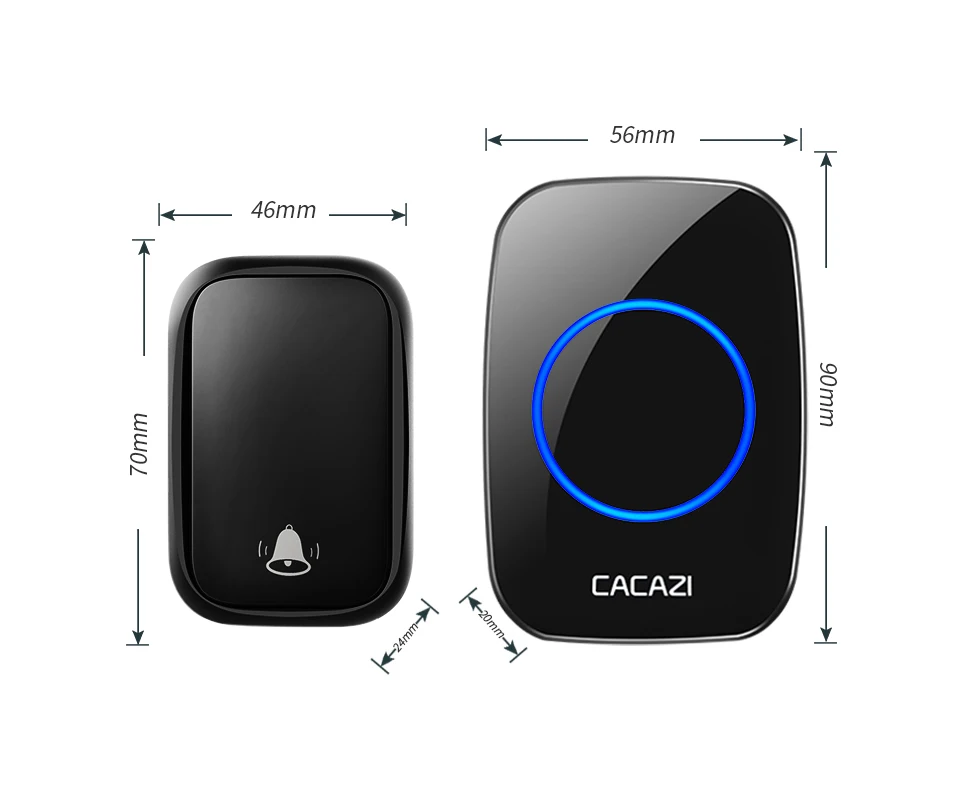 1. Нажмите кнопку, супер обучающий код может свободно научиться сочетать, может быть неограниченным подходящим приемником. 2. Вместо использования батареи, кнопка преобразует кинетическую энергию в электрическую и посылает сигнал при нажатии. 3. Передатчик может нормально работать в снежной или высокой температуре окружающей среды, водонепроницаемый и пыленепроницаемый. 4. Если несколько кнопок соединены с одним или несколькими приемниками в одной системе, каждая кнопка может быть установлена на другой мелодии звонка. 5. Функция отключения памяти: Включите питание снова после выключения питания, не нужно повторно регулировать и блокировать мелодию звонка. 6. Приемник доступен в различных вилках, штепсельных вилках США/ЕС/Великобритании и адаптерах Австралии, подходит для большинства стран. 7. Привлекательная подсветка мигает, когда кто-то толкает дверной звонок. Особенно подходит для пожилых, глухих и беременных женщин. 8. Напряжение приемника составляет 220 В. 9. Приёмник находится на расстоянии 150 метров (в открытой местности), что может зависеть от окружающей среды и препятствий. 10. Приемник имеет 60 мелодий звонка на выбор, а громкость 0-110 дБ на 5 уровнях. 12. Просто подключите приемник к электрической розетке, передатчик кнопки может быть приклеен к двери с помощью прилагаемых клейких лент. Примечание: Кнопка не может быть размещена на железной двери, потому что это будет мешать сигналу. Если приемник не звонит при нажатии кнопки после получения дверного звонка, Пожалуйста, подключите дверной звонок.
