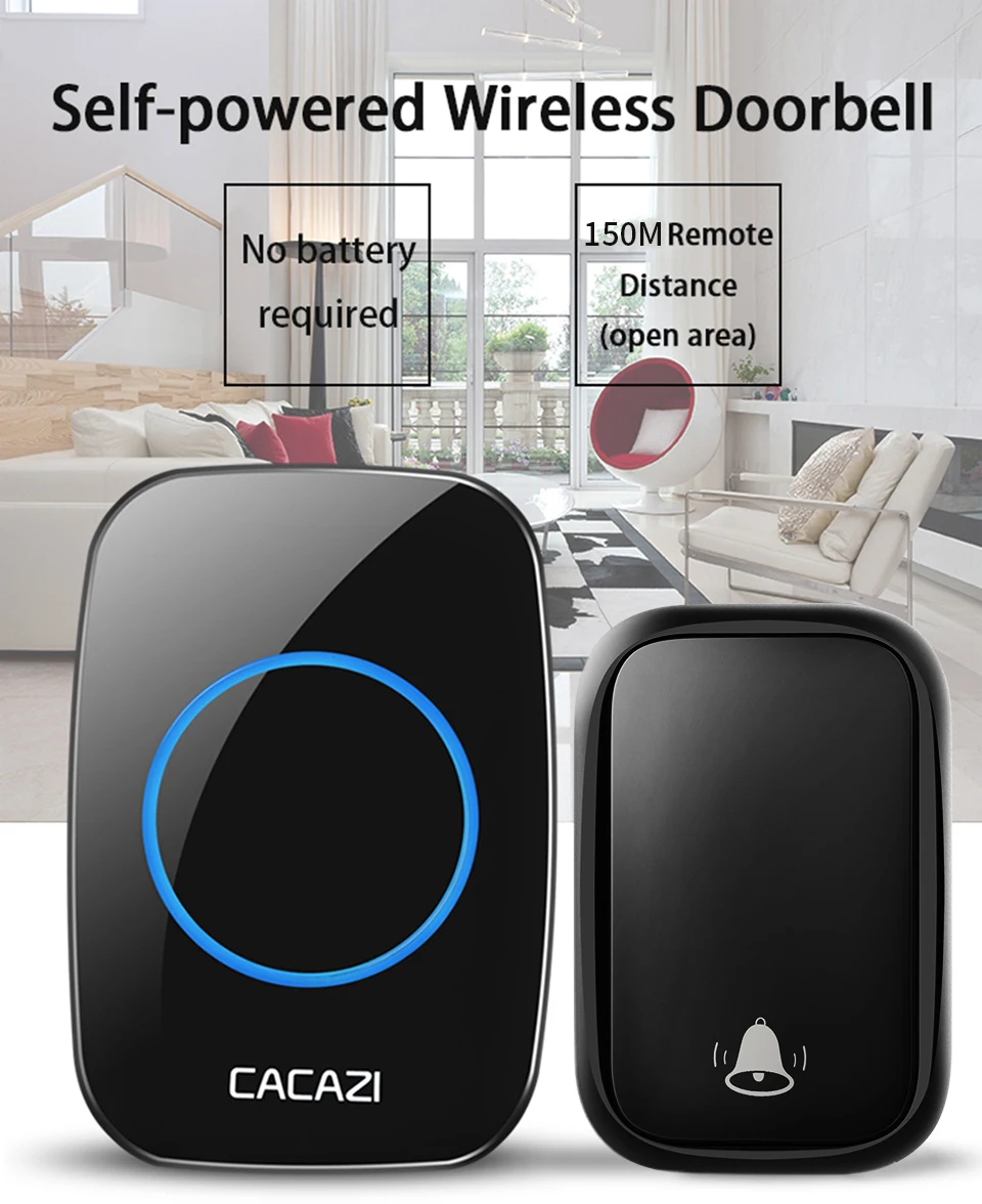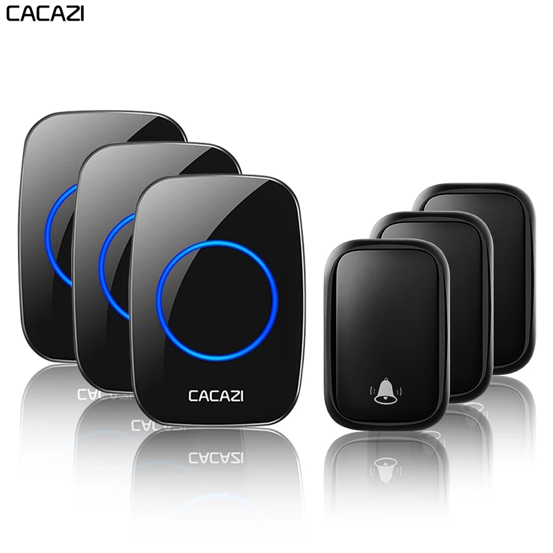 Беспроводной дверной звонок CACAZI, водонепроницаемый, автономный, без аккумулятора, 3 передатчика, 1 приемник, вилка стандарта США, ЕС, Великобритании, Австралии, домашний звонок