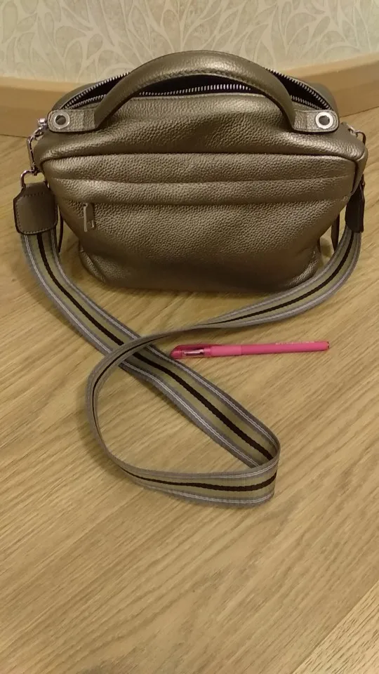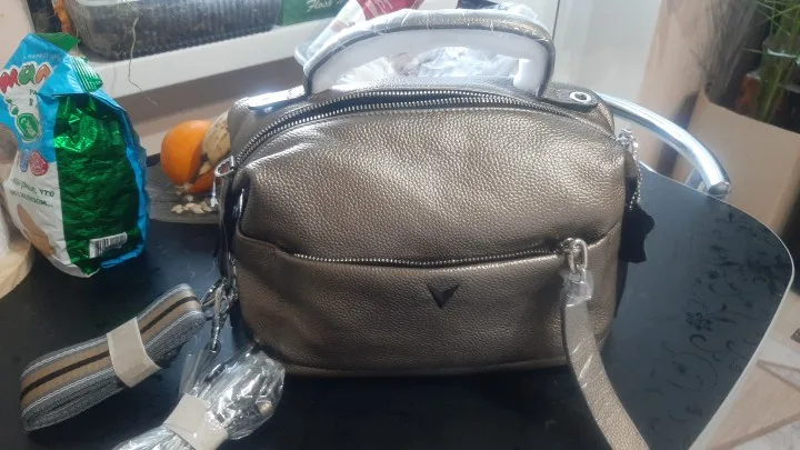 Красивая сумка, сделанная очень аккуратно, напоминает итальянские сумки, серебристо-золотой цвет (очень приятный), материал ремешка короткий, но кожа длиннее. Быстрая доставка в Польшу в течение 2 недель. Я настоятельно рекомендую.