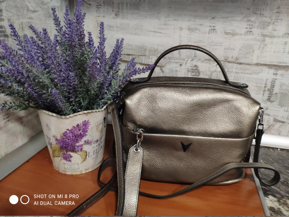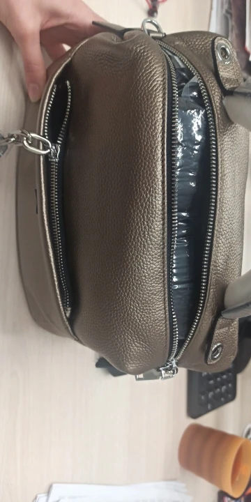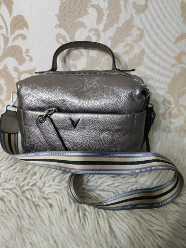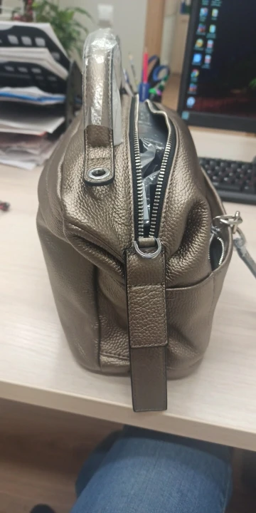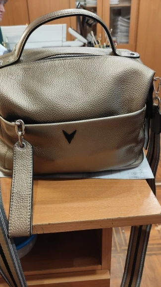 Сумка хорошая, сшита аккуратно качественно, цвет думала серебристый, по факту она золотистая, цвет красивый кожа хорошая