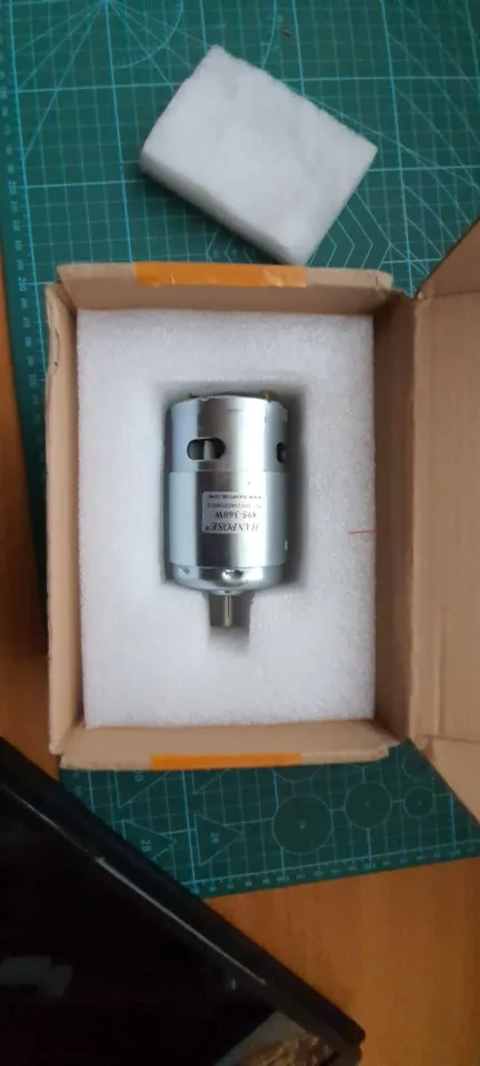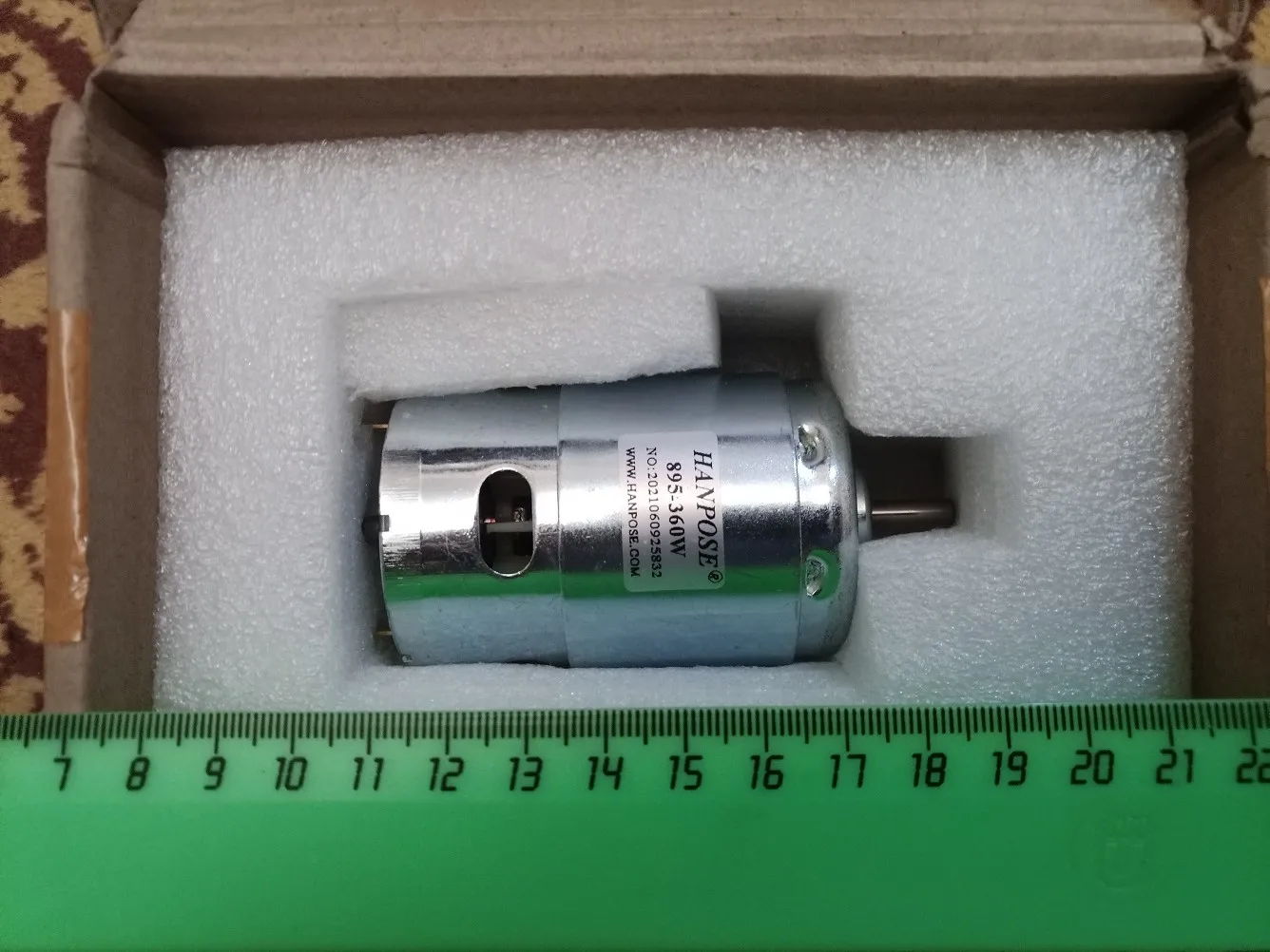 Упакован двигатель просто отлично. Коробка, изнутри обложен вспененным пластиком, не повредится. Теперь о плохом. Двигатель клинил вначале при работе в одну сторону. Потом разработался. Кроме этого узел щеткодержателя выполнен безобразно, щетка упиралась углом в коллектор, пришлось заниматься проктологией чтобы ее выставить, пластины которые поджимают щетки не догнуты до нужного угла, скорее всего. Сейчас вроде как все работает но осадочек остался. Тестировал на лбп, включать сразу напрямую не советую. От 12В ток хх 1.4А, от 24В 1.7А. На 30В уходит в защиту, более 3А.