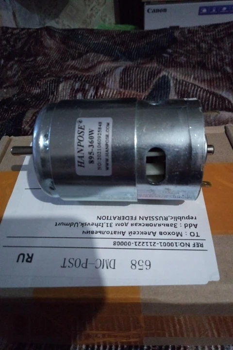 Двигатели работает, пришли за 8 дней. Я заказал два 895-360w-12000rp-24V, но одни имеет другие параметры. Один не так мощны и обороты у его заметно меныше. Номера у них резные - № 202101193767 и № 202101193747