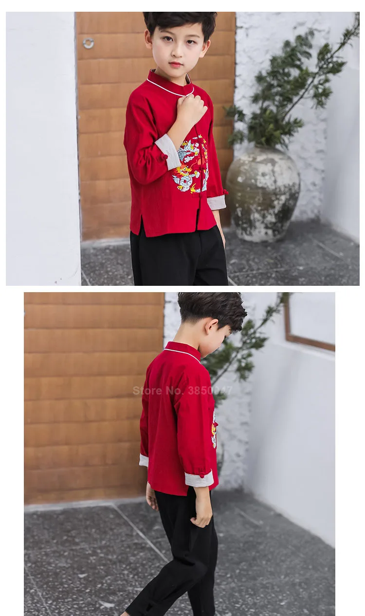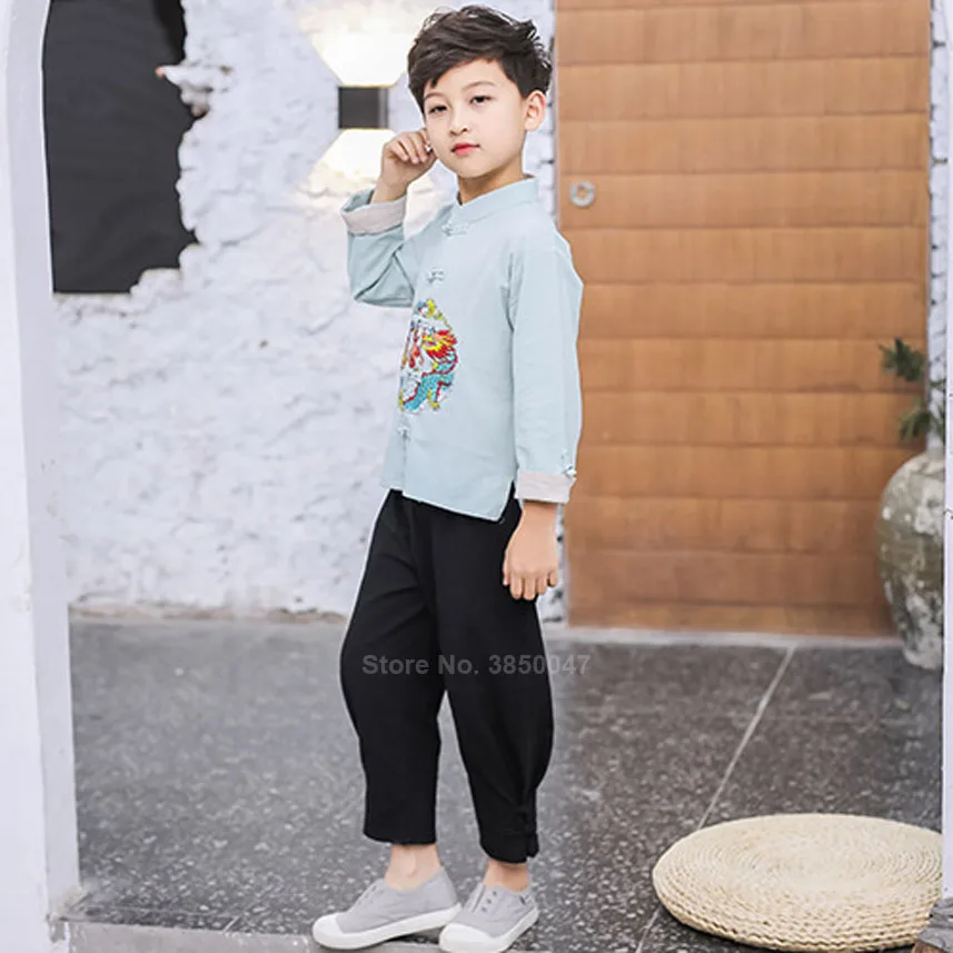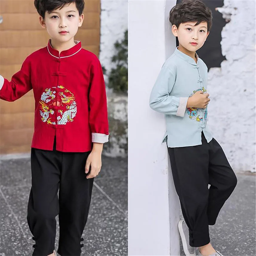 Детский китайский костюм Тан в стиле ретро для мальчиков и девочек с вышивкой дракона женская форма для Тай Чи Кунг-фу Новогодний подарок на день рождения