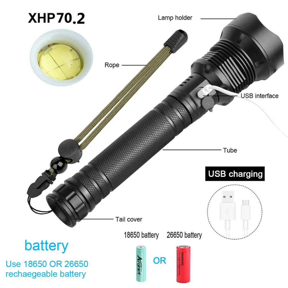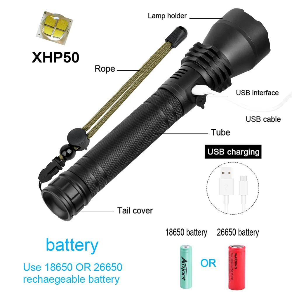 Anjoet наборы XHP70.2 мощный светодиодный фонарик usb Zoom тактический фонарь xhp50 18650 или 26650 аккумуляторная батарея ручной свет