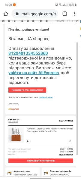 Страна: RU Color: only nail clipper Доставка: Standard Shipping 20.09.2020