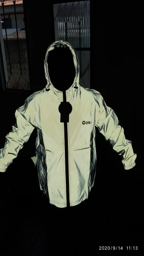 visibility is awsome. normal EU size is M. ordered XL and is still tight. zipper is going all the way to top of hood where some cords in the hood would be better. pocket with zipper on chest is fake. side pockets can't be closed and are to small to hold things. price vs quality is unless these remarks good.