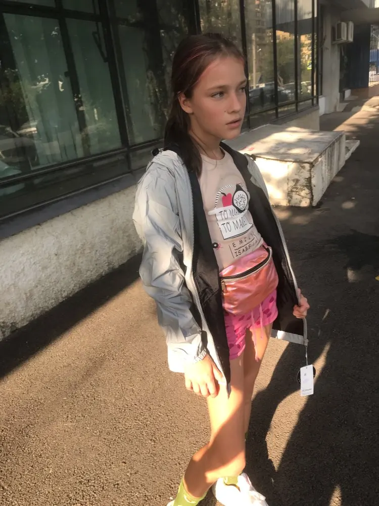 Купите куртку размера M и девочку с эффектом потертости (по крайней мере, 2 размера плюс для девочки)