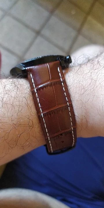 ремешок очень хорошего качества. Это не кожа а зам кожы наивысшего качества которого по внешне не отличить от натуральной кожи, и видно сразу что прочность тоже не плохая. В общем, закажу ещё и запасные скоро, так как очень доволен ремешком. РЕКОМЕНДУЮ!