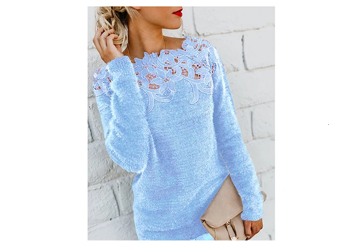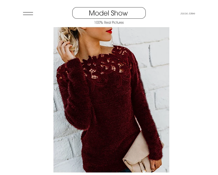 Jocoo Jolee женский сексуальный кружевной ажурный свитер с вырезом-лодочкой Повседневный флисовый плюшевый пуловер женский элегантный джемпер оверсайз