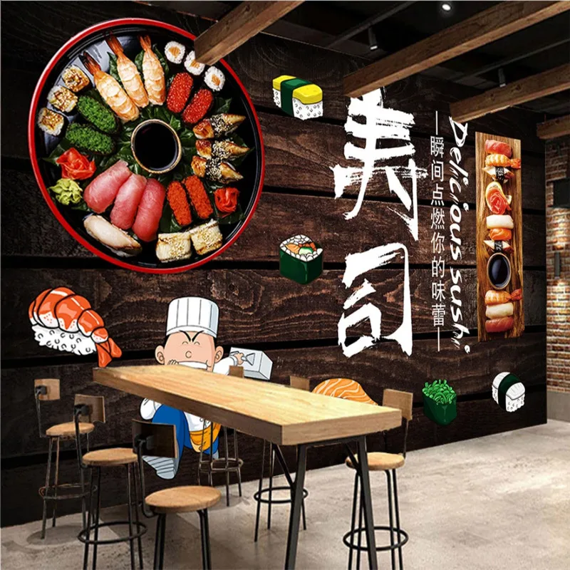 Японская кухня суши Ресторан промышленный Декор Фон настенная бумага 3D современный суши Магазин Доска настенная бумага 3D