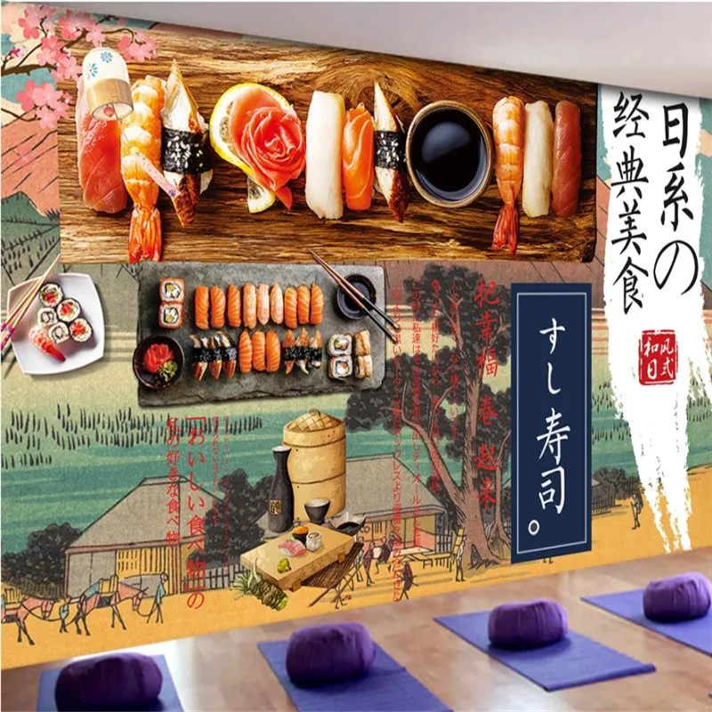 Горячая продажа японский Ресторан Суши магазин росписи обоев