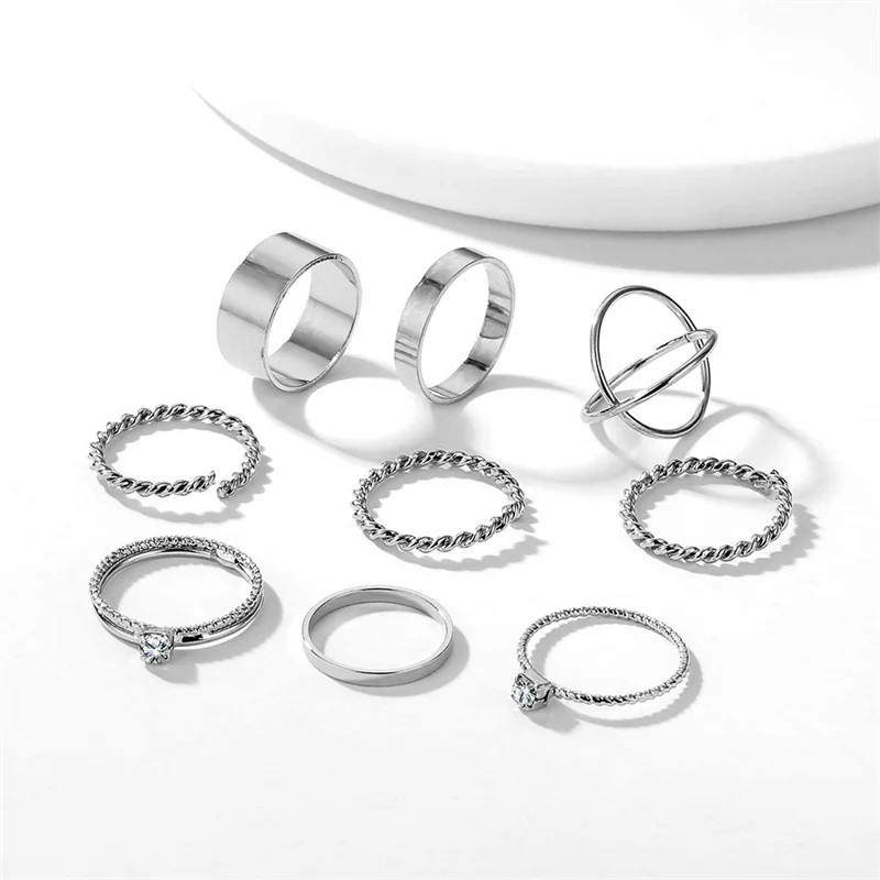 Набор женских колец в стиле бохо, 9 шт.компл., золотистые и Серебристые, винтажные, круглые, подарочные украшения