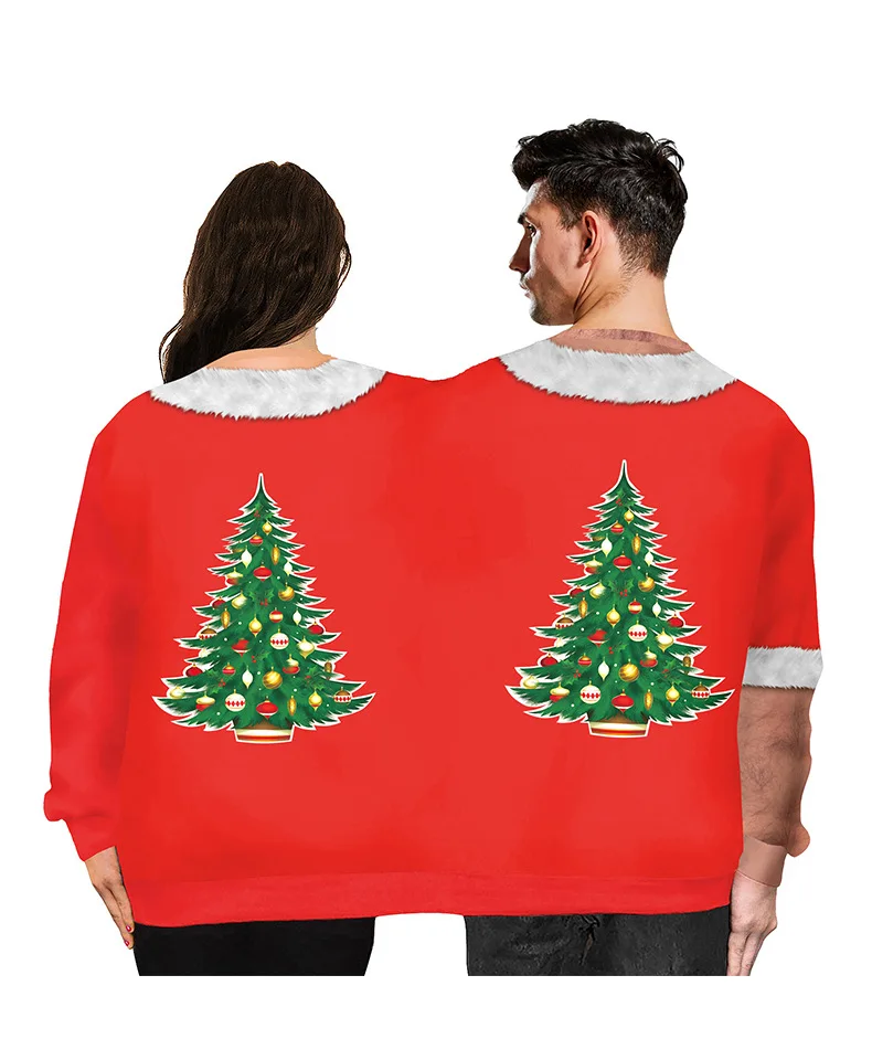 Рождественский свитер, праздничный парный двойной свитер с 3D Цифровым принтом, свободная забавная осенне-зимняя одежда для влюбленных