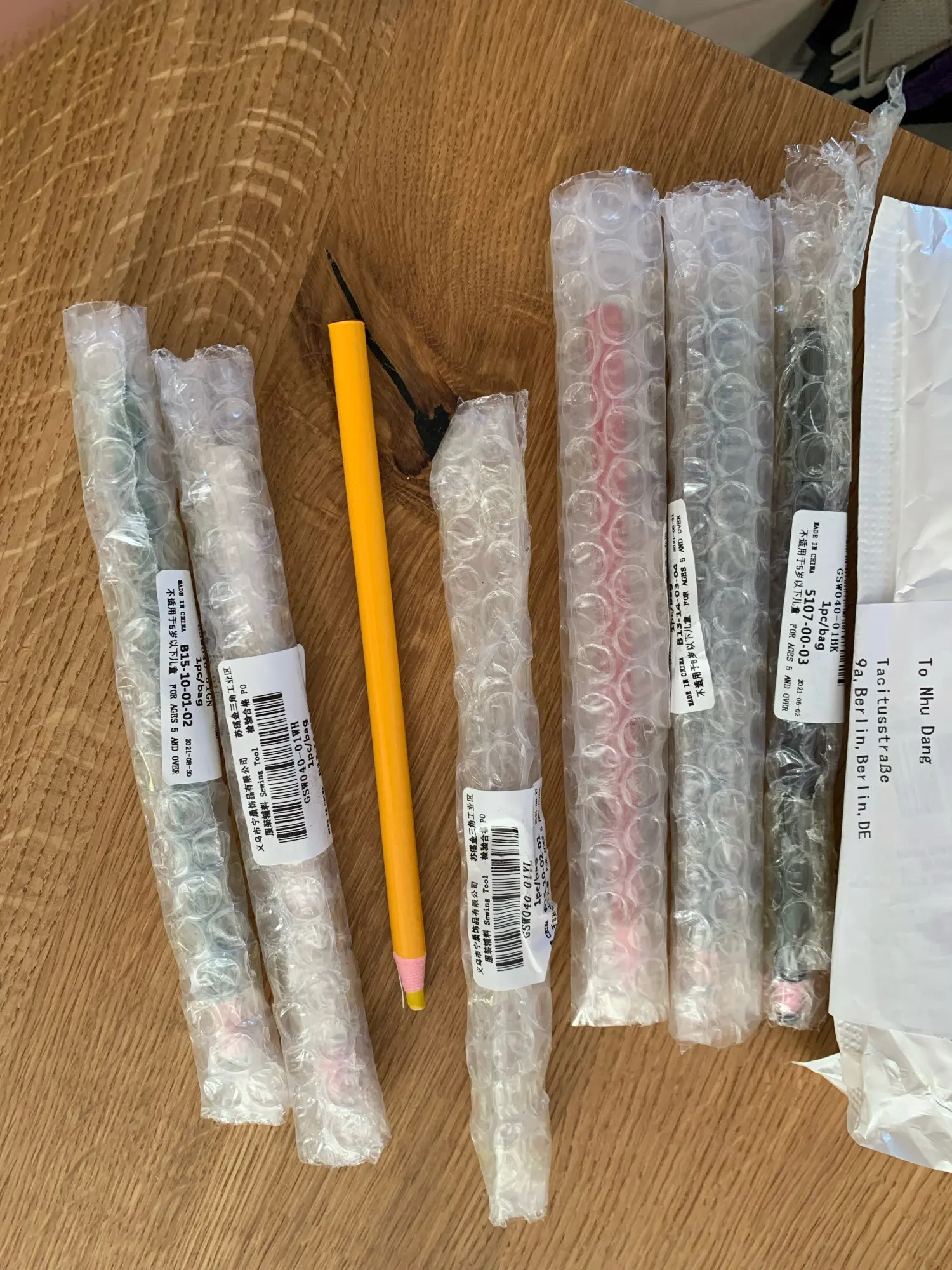 Хорошие карандаши, хорошо работают .. Отдельно упаковано в пузырчатую фольгу. 3 недели от заказа до получения в Нидерландов .. Рекомендуемый магазин и продавец!