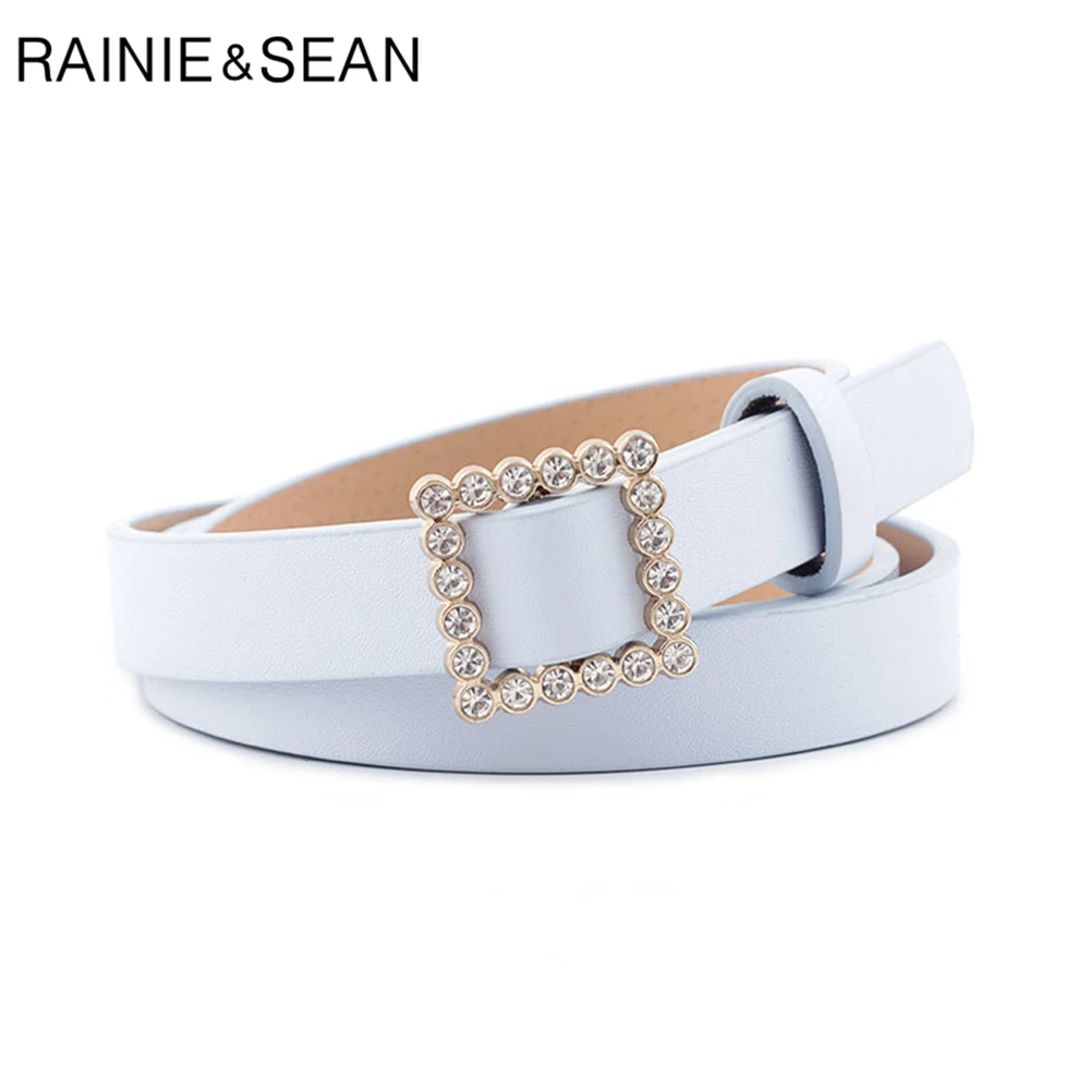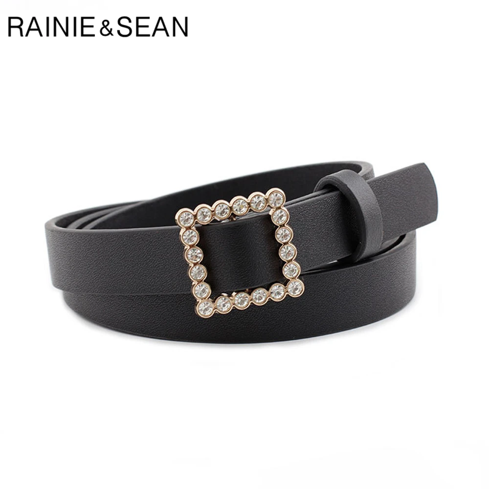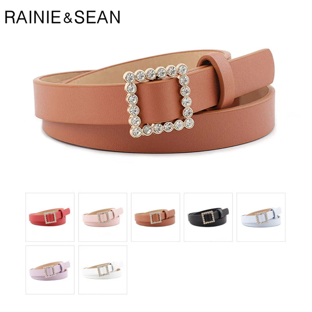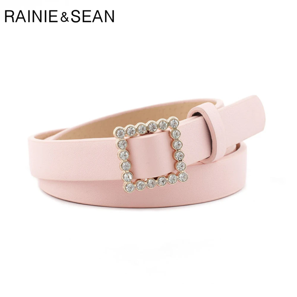 Ремень RAINIE SEAN Стразы с пряжкой без отверстий женский модный однотонный ремень для брюк черный розовый красный фиолетовый женский тонкий ремень 107 см