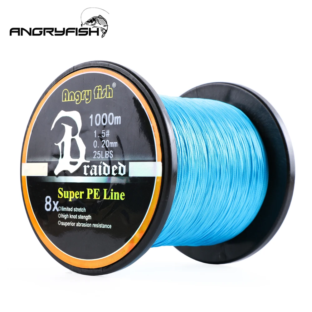 Angryfish 1000 метров 8x плетеная рыболовная леска 8 цветов, износостойкая супер полиэтиленовая леска