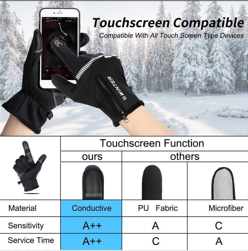 Удобные, сшиты качественно, тёплые, в минус 7 при встречном ветре рукам тепло, единственные минус-промокают! Сенсор телефона работает через раз!