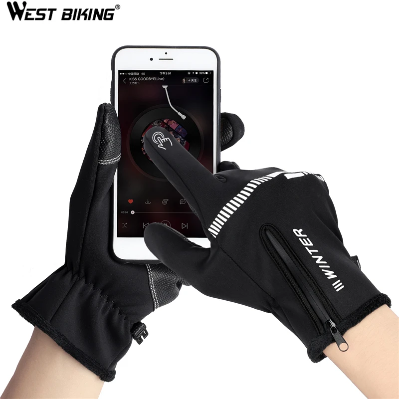 Зимние велосипедные перчатки WEST BIKING, теплые велосипедные перчатки для сенсорных экранов, для лыж, рыбалки, спорта, для мужчин и женщин, мотоциклетные велосипедные перчатки