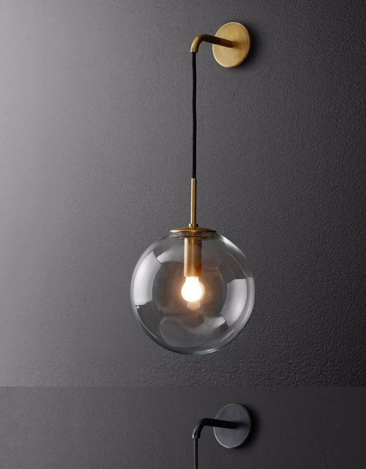Настенные светильники в стиле лофт, стеклянный шар, ретро, старинны...