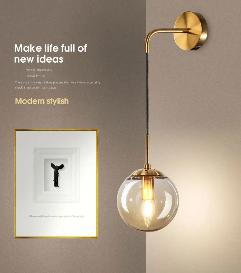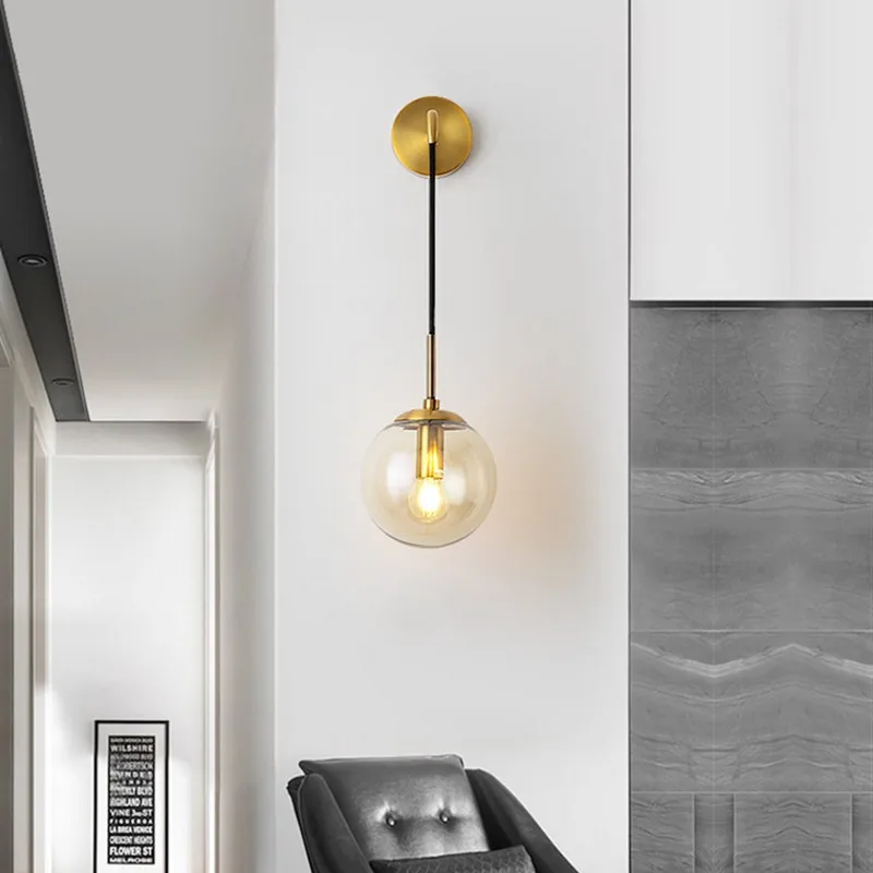 Светодиодный ная настенная лампа в скандинавском стиле, современное Бра в форме стеклянного шара, светильник для спальни, коридора, лестницы, E14, 15 см (D), для дома и магазина