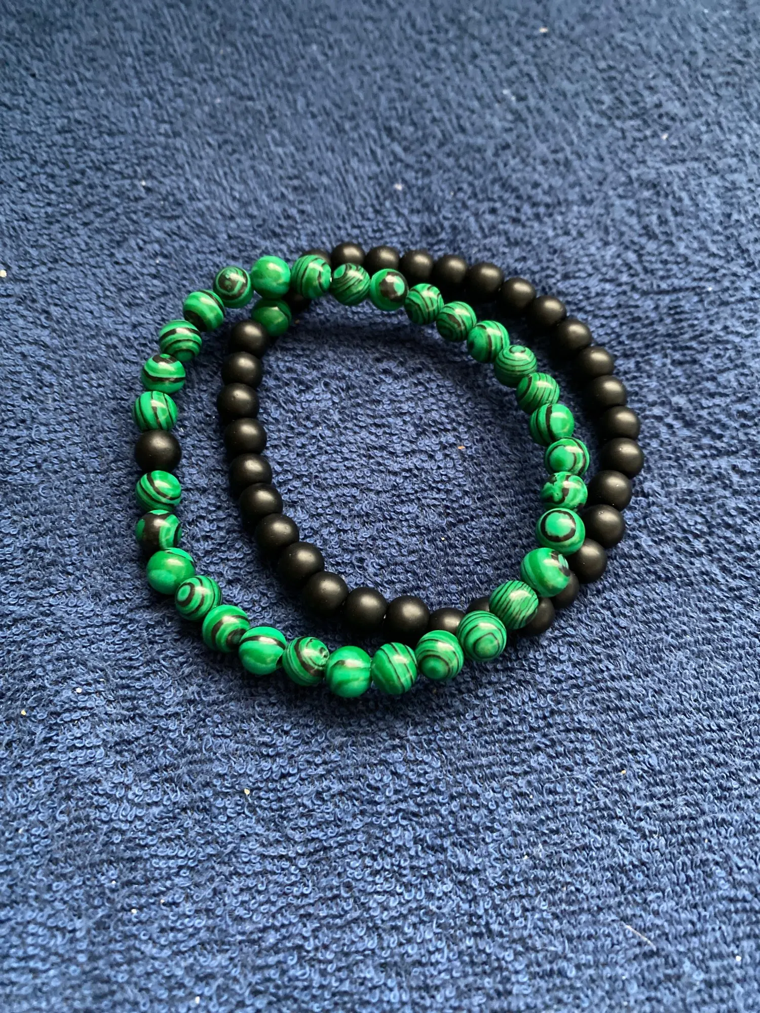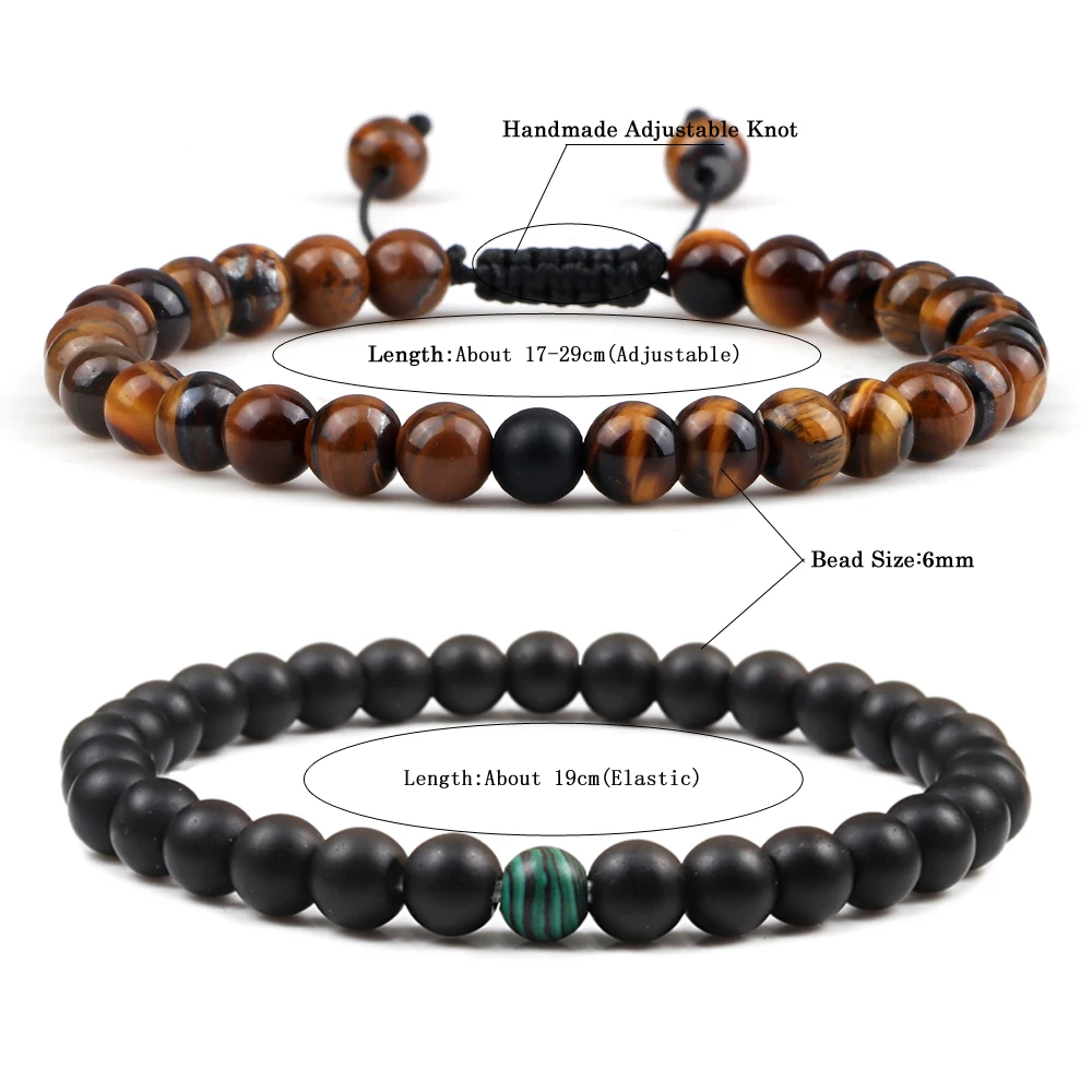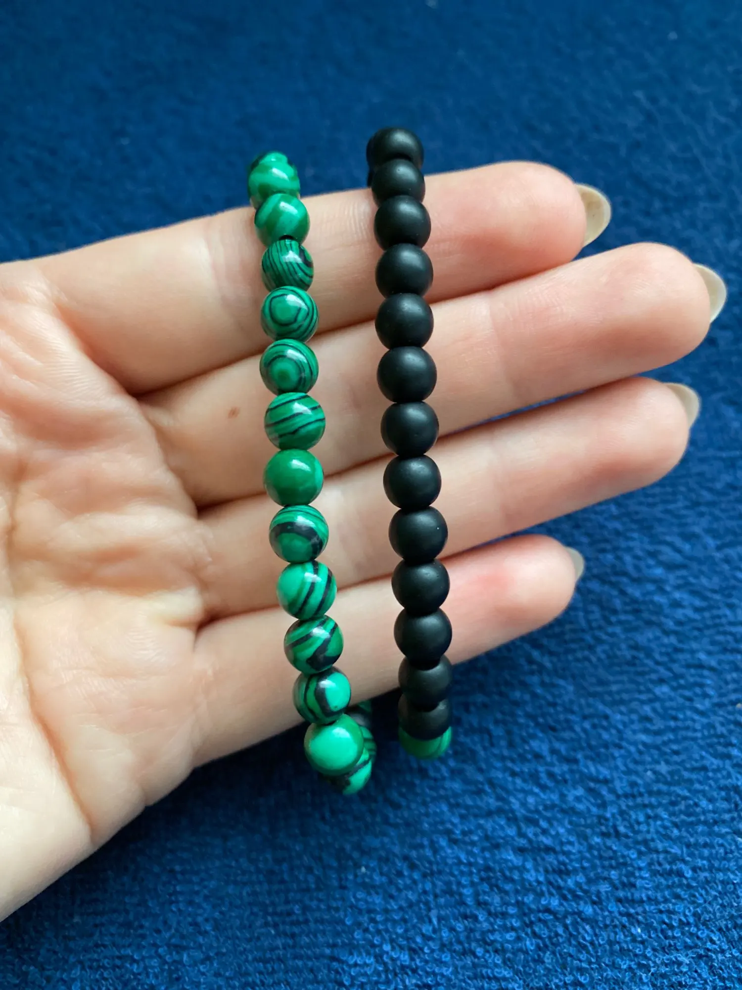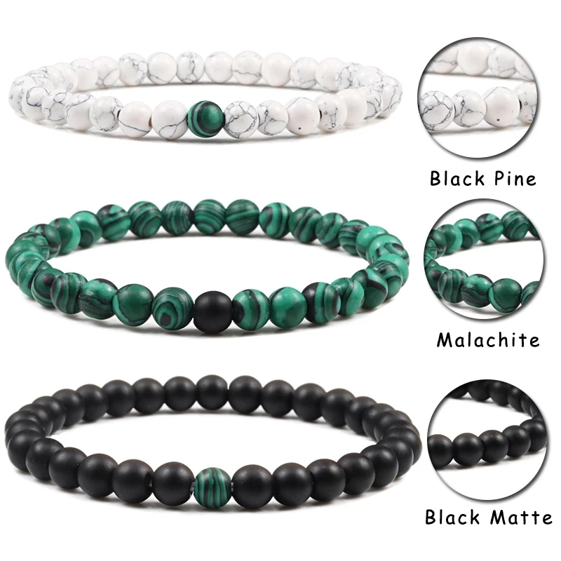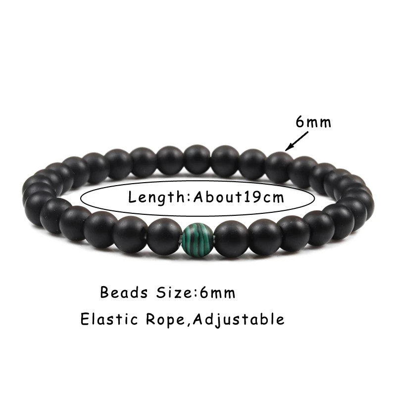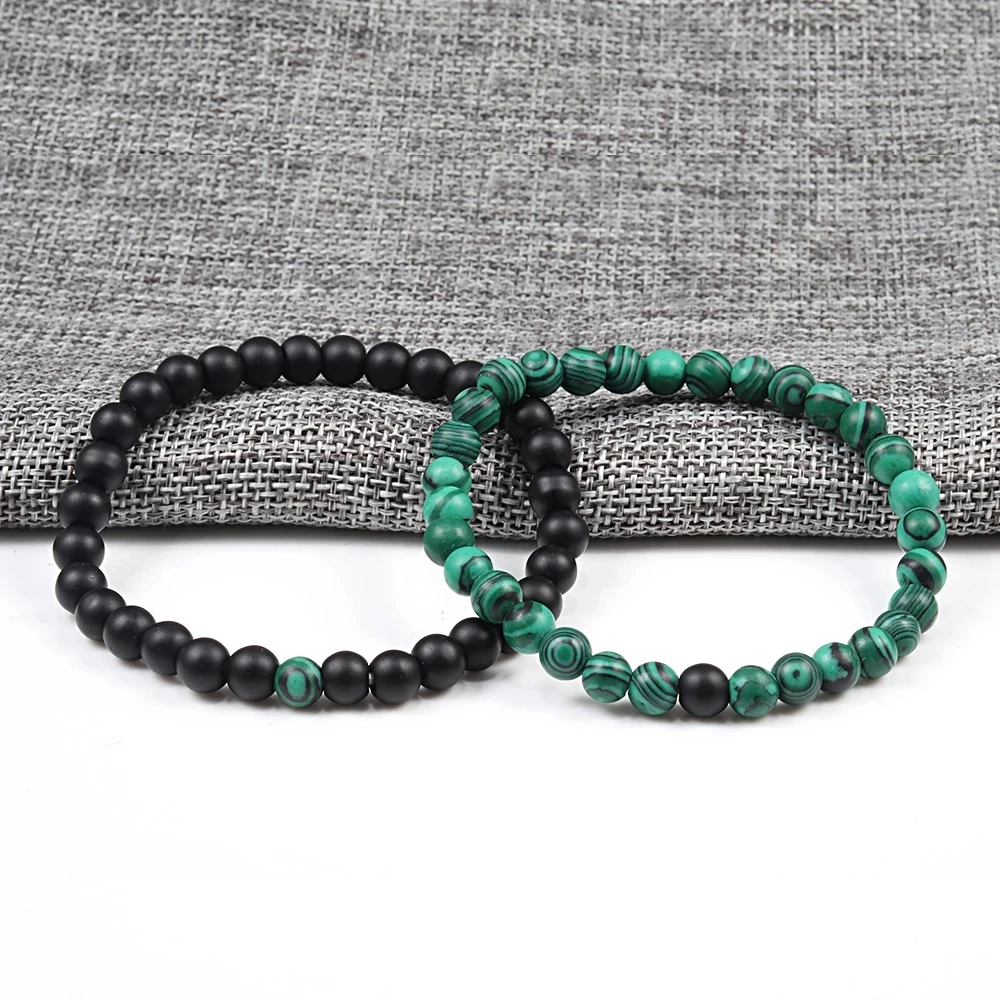Пары Браслет с бусинами классический черный матовый зеленый Малахит браслеты подходят для женщин мужчин Йога Эластичные ювелирные изделия