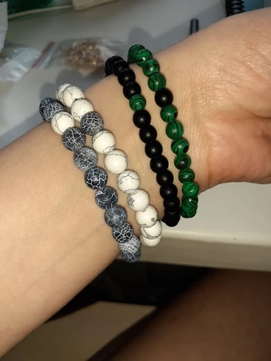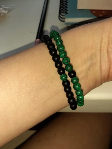 бусины браслета оказались меньше чем ожидалось. По качеству конечно это далеко не камень,обыкновенная пластмасса.За пластмассу это дорого.