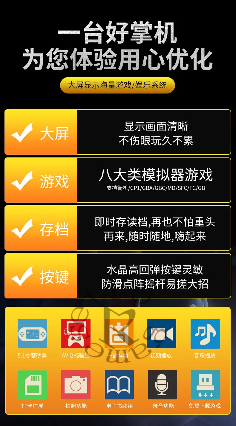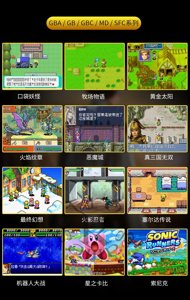 Поддержка формата игры: GBA, NES ,SFC,MD(BIN),GB,GBC,FC,CPS1,CPS2,NEOGEO,SMS(GBA),PS1