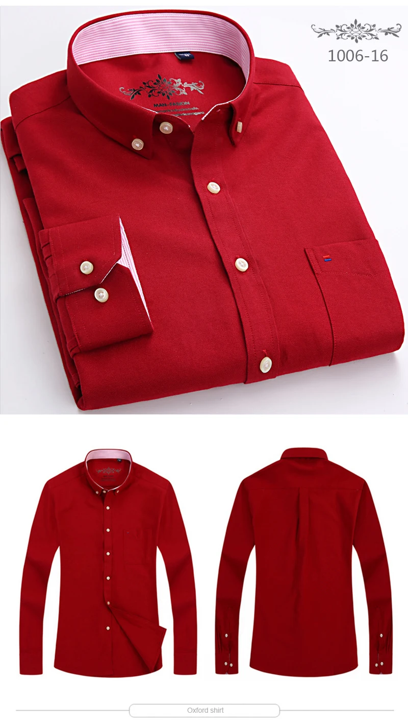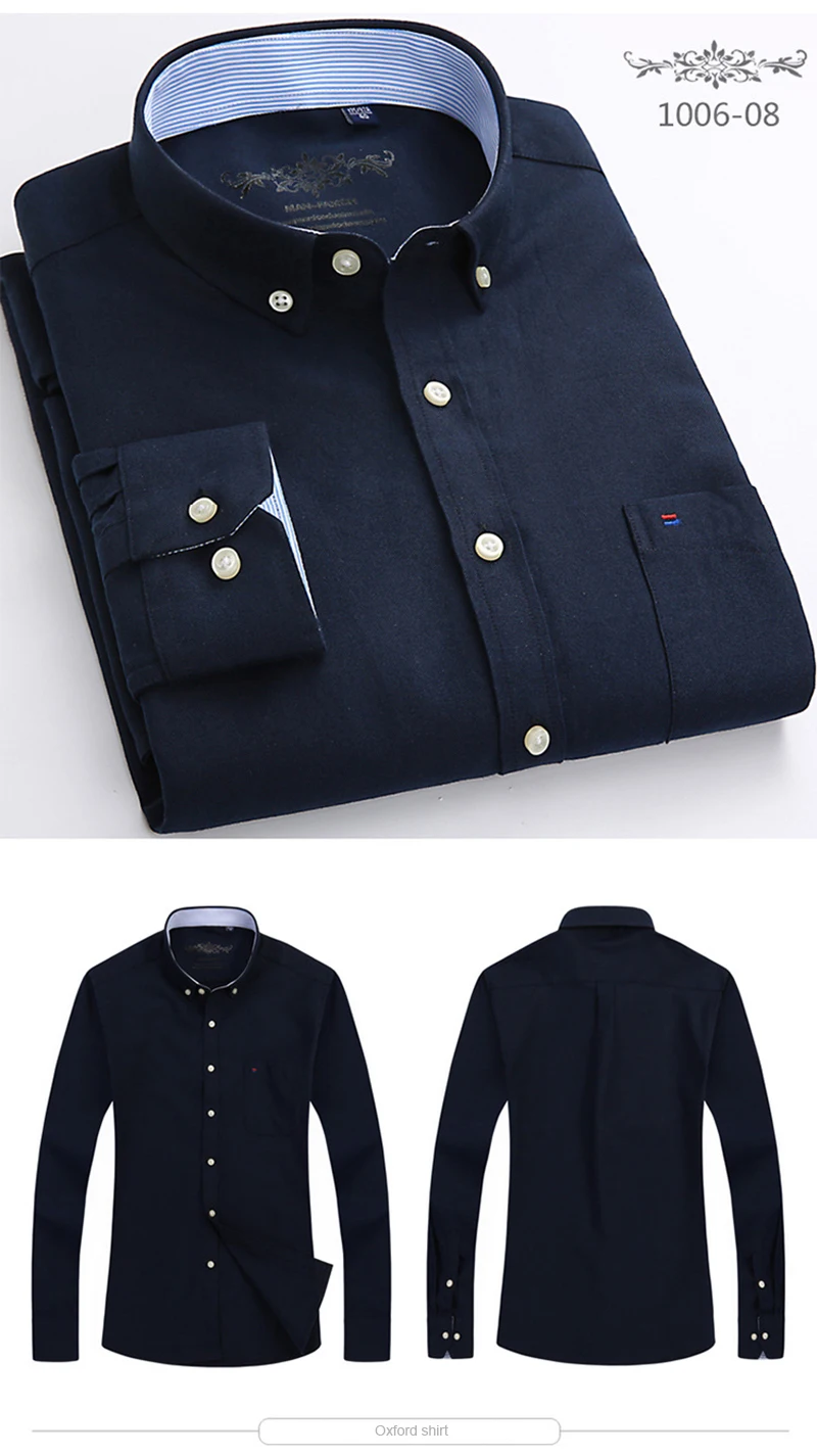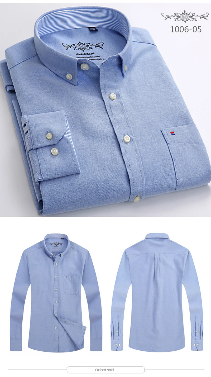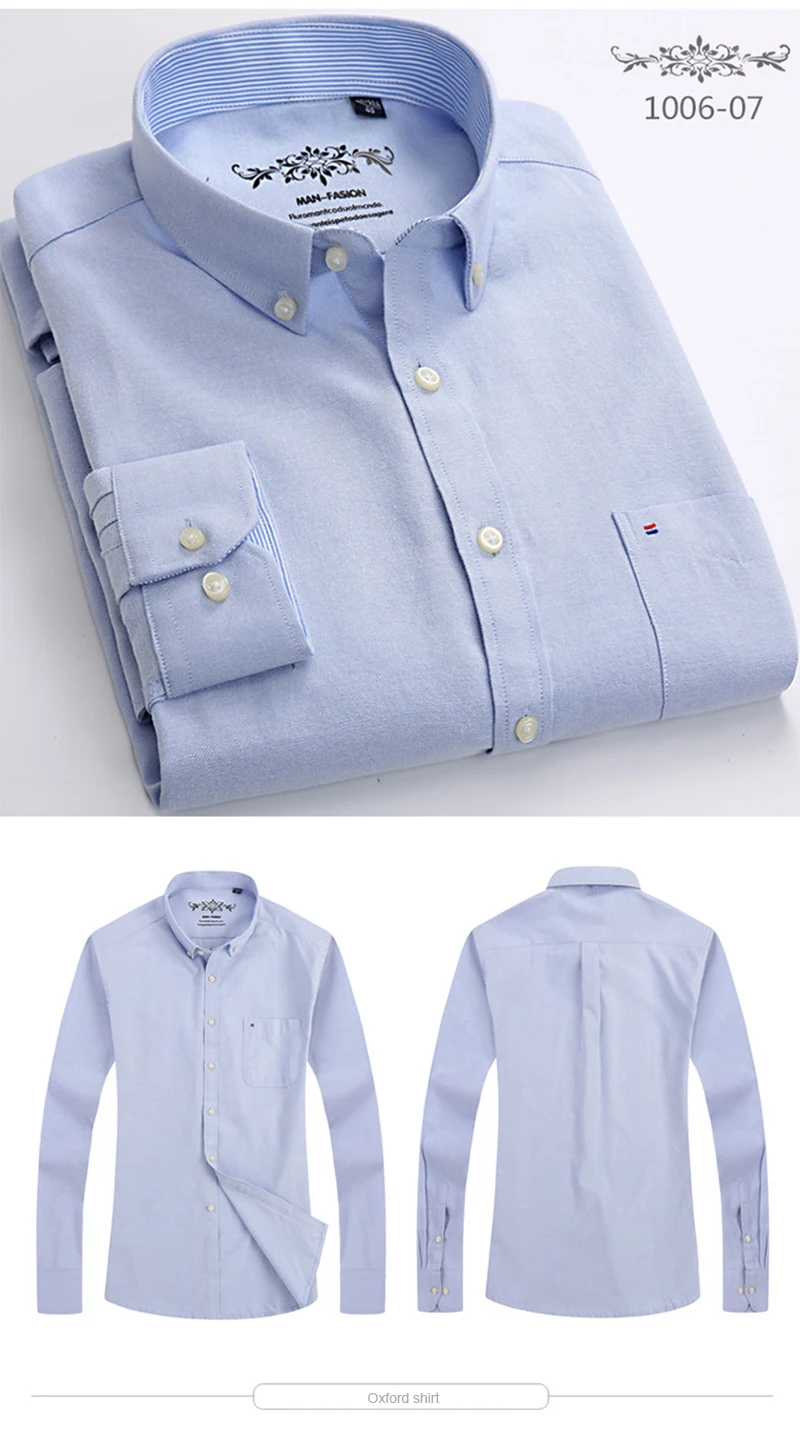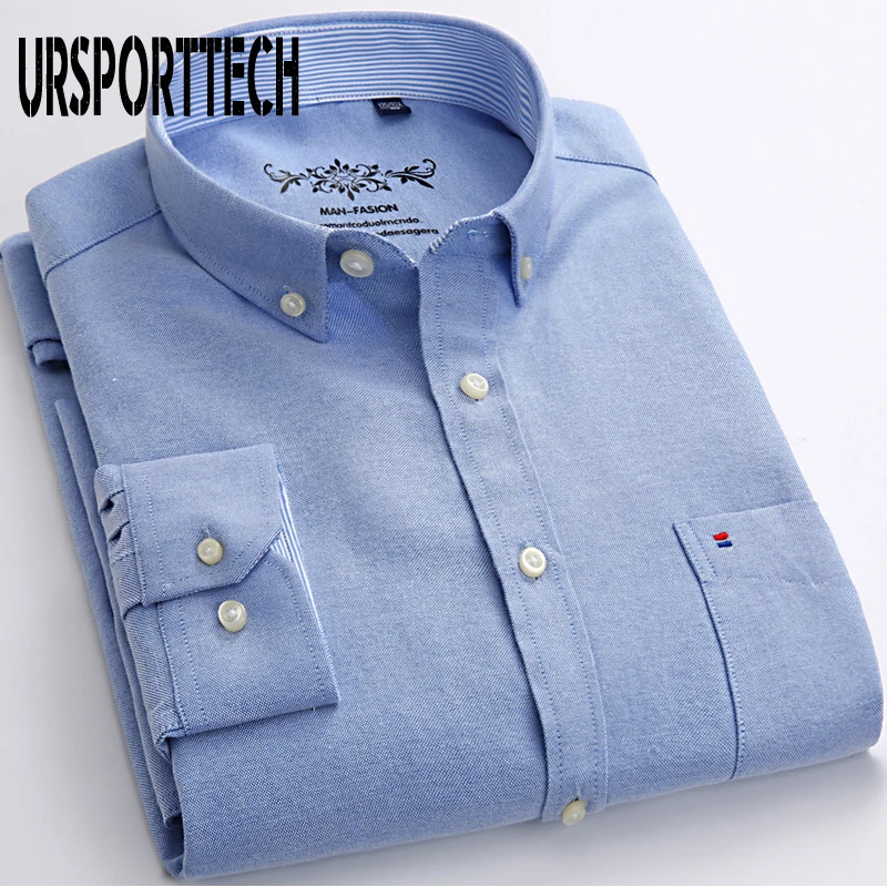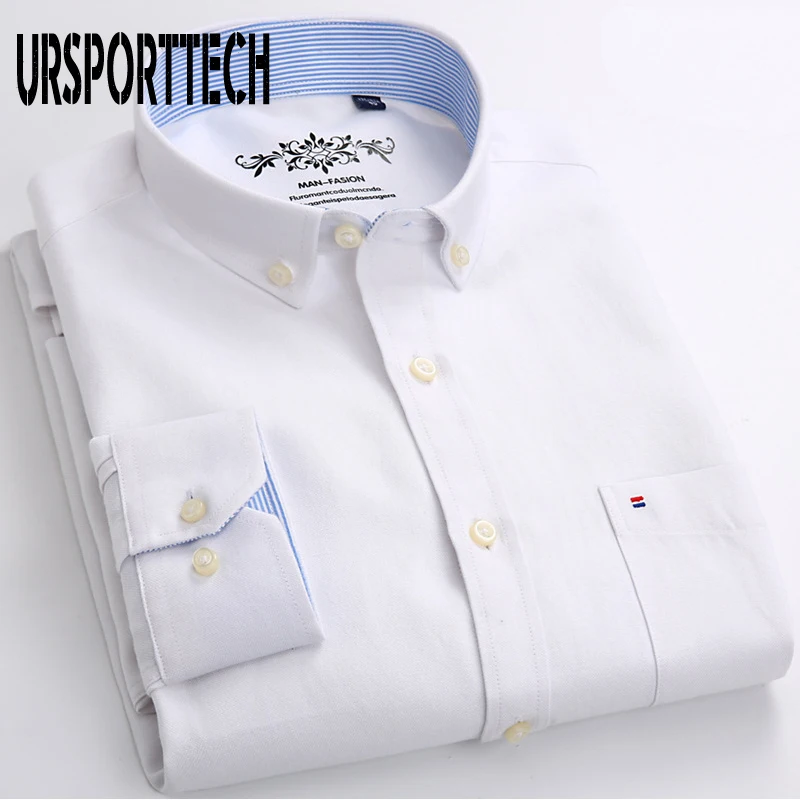 Белая рубашка с длинным рукавом, Мужская однотонная Классическая рубашка из ткани Оксфорд с левым нагрудным карманом, Высококачественная Мужская Повседневная рубашка на пуговицах
