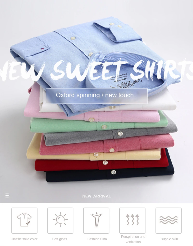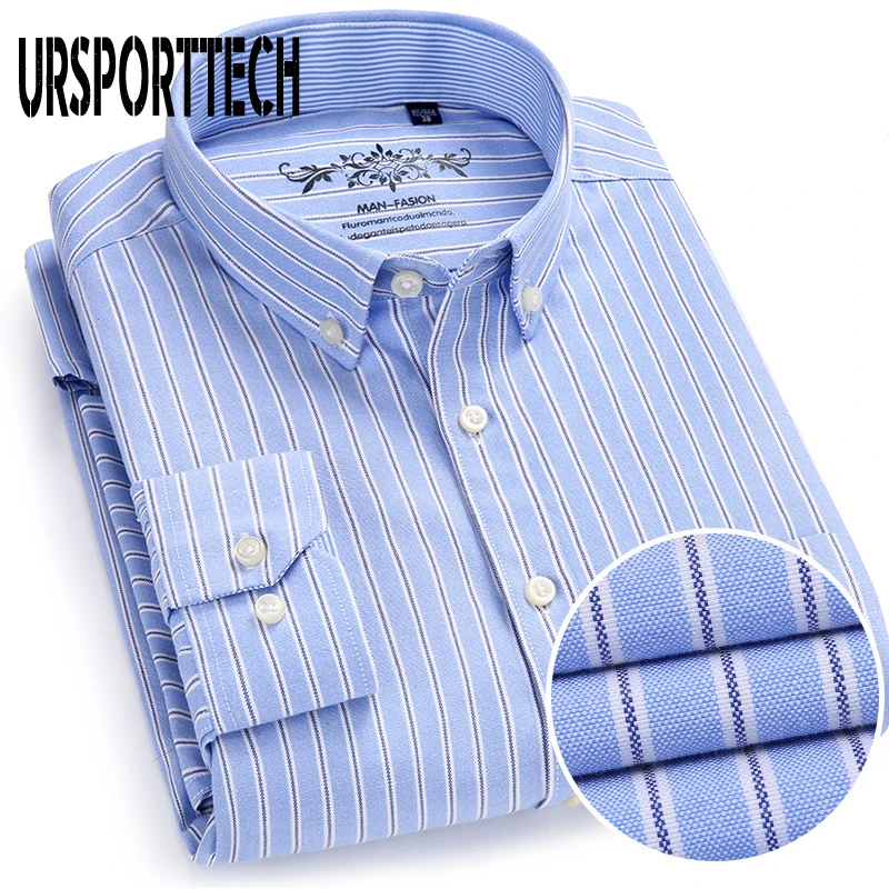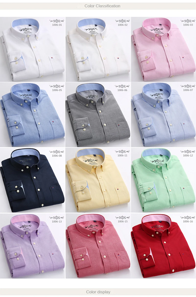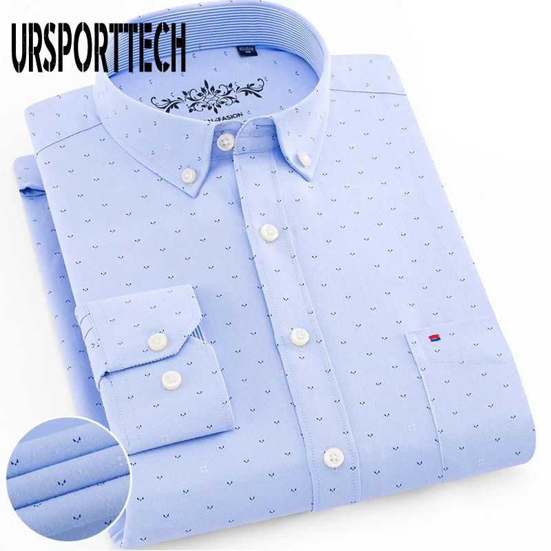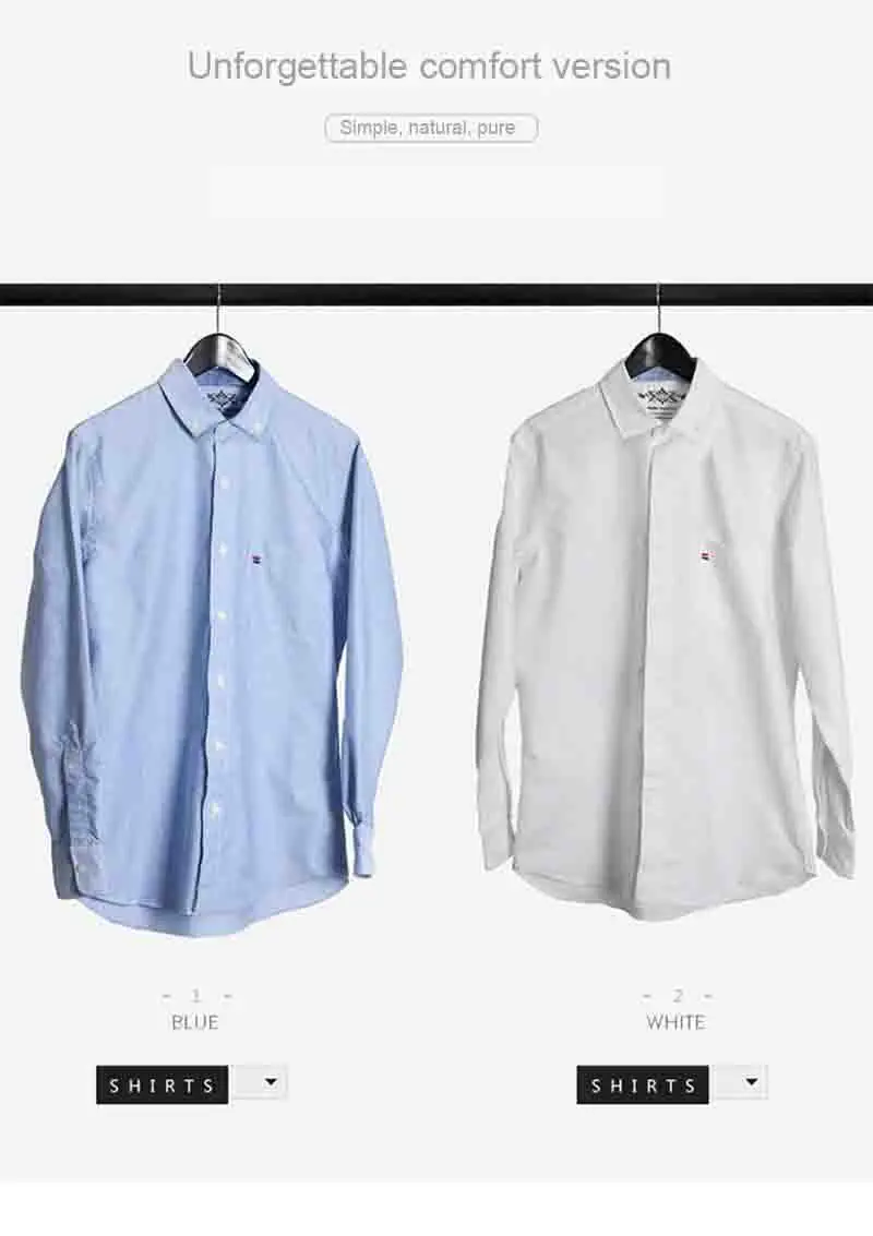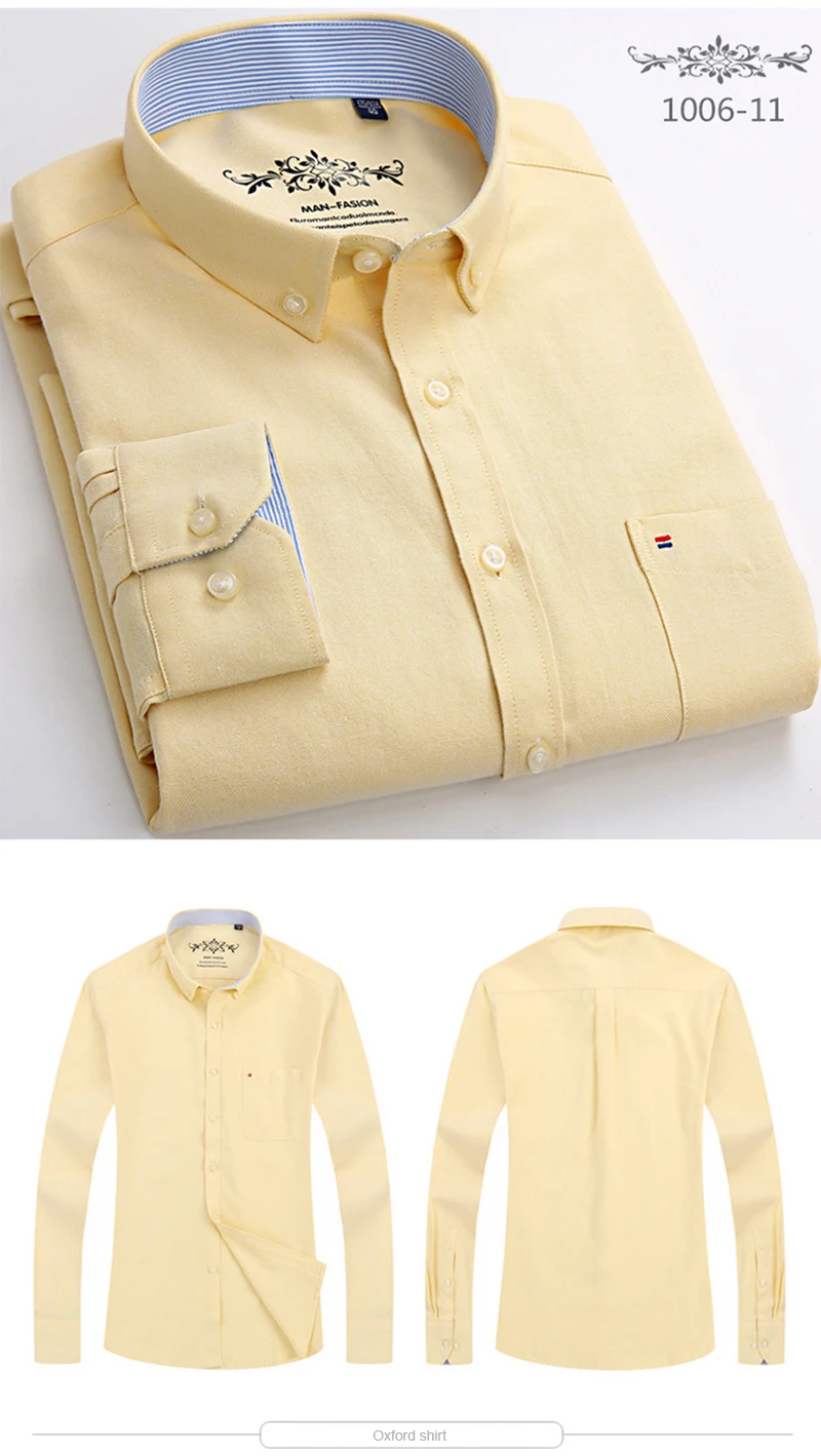 Белая рубашка с длинным рукавом, Мужская однотонная Классическая рубашка из ткани Оксфорд с левым нагрудным карманом, Высококачественная Мужская Повседневная рубашка на пуговицах