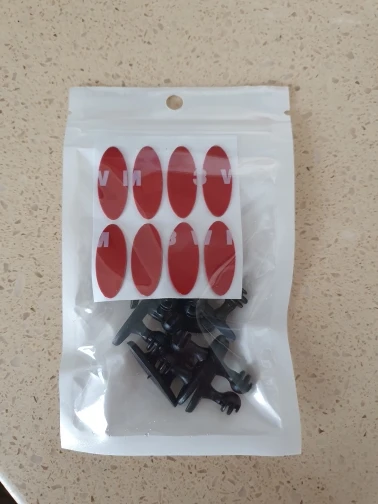Качество двустороннего скоча оставляет желать лучшего, сам пластик на приклеиваемой стороне имеет остаточный "хвост" от заливки в форму. Итог: изделие отклеивается от своего скоча и отпадает. Не рекомендую.