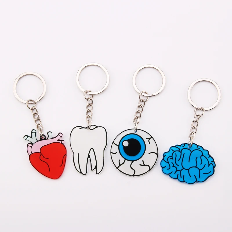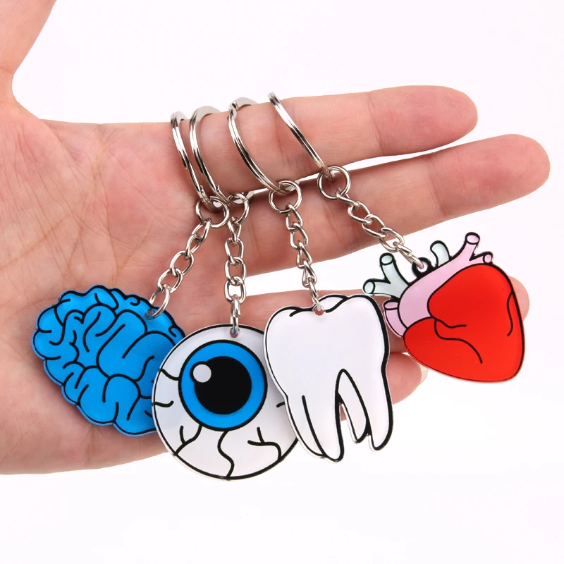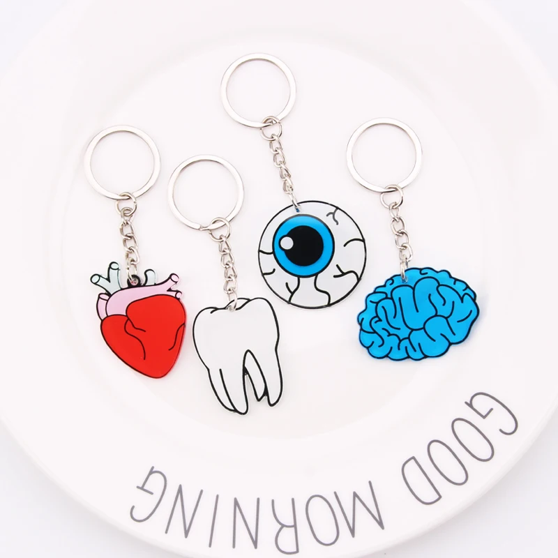 Лидер продаж, новинка, брелок для ключей с изображением органа, сердца, мозга, глаз, зуба, брелок для ключей для женщин и мужчин, милый аниме мультяшный детский брелок для ключей, подарок