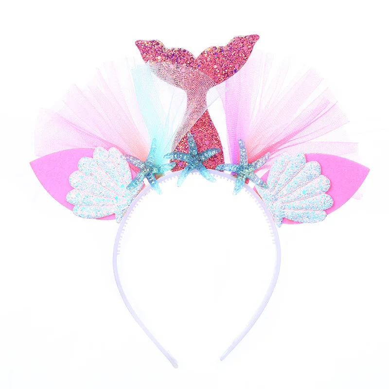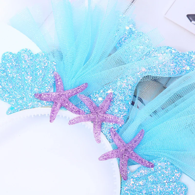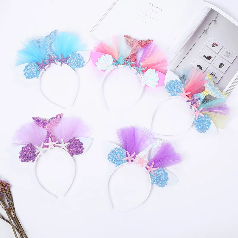 Новые модные рождественские аксессуары для волос русалки, расшитые блестками, для маленьких девочек, красочные сетчатые повязки на голову, милые детские головные повязки с рисунком в виде ракушки